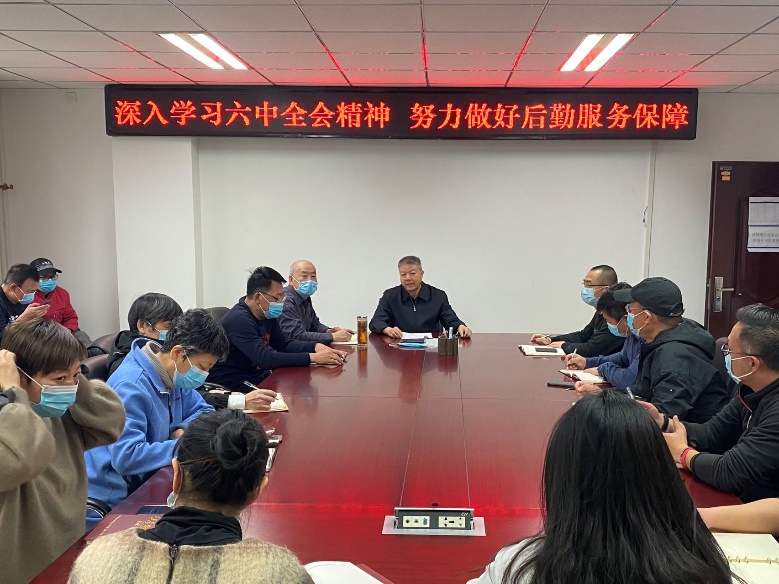 按照學(xué)校黨委關(guān)于學(xué)習(xí)黨的十九屆六中全會(huì)精神的安排,副校長(zhǎng)王希忠于2021年12月23日為后勤集團(tuán)黨員干部職工做了題為“深入學(xué)習(xí)六中全會(huì)精神,努力做好后勤服務(wù)保障”的六中全會(huì)精神專(zhuān)題宣講報(bào)告。會(huì)議由后勤集團(tuán)黨總支書(shū)記唐汝明主持。
