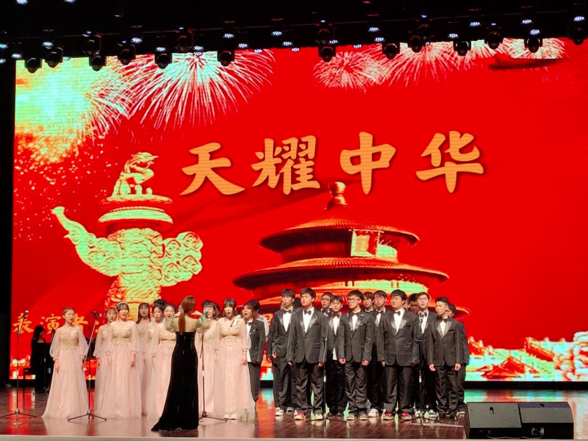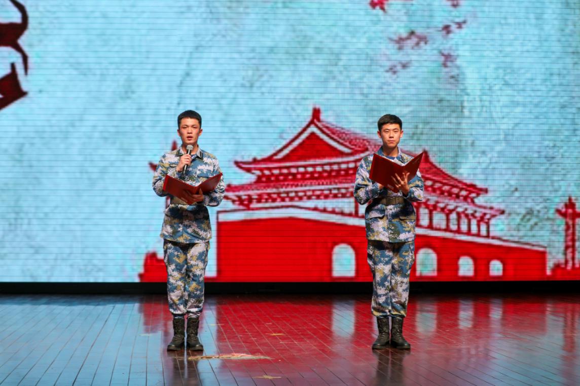 情景劇《戰火中的大學生》重現了戰火紛飛的年代中,團員青年們激昂的斗志,贏得了現場觀眾的陣陣掌聲。朗誦《青春中國》、《青年》展現了當代青年心系祖國富強、胸懷民族復興的新時代風貌及奮斗精神。校“夢之聲”合唱團帶來了《天耀中華》和《唱支山歌給黨聽》,為偉大的祖國、偉大的中國共產黨唱出北工院學子心中最美的歌。文藝匯演的最后,全場師生揮舞手中的旗幟,一起唱響《沒有共產黨就沒有新中國》,用嘹亮的歌聲抒發對黨的熱愛,用真摯的情感表達永遠跟黨走的決心。