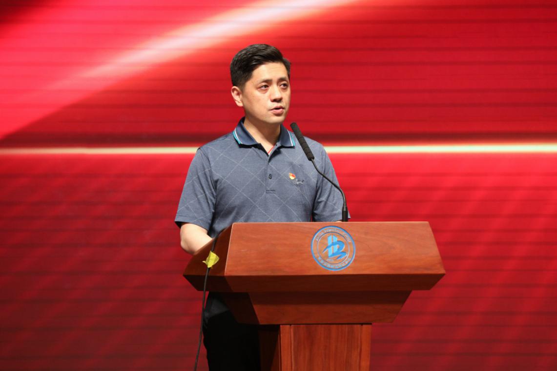 表彰大會在雄壯的國歌聲中拉開帷幕,黨委副書記魏曉東代表學校黨委向受表彰的先進集體和個人表示熱烈的祝賀!向各位青年朋友和長期以來致力于青年事業的同志們致以最誠摯的問候和衷心的感謝!他在講話中談到,2021年迎來了中國共產黨成立100周年、中國共青團成立99周年和“五四”運動102周年,在這個具有特殊意義的歷史時刻,我們紀念五四運動,就是重溫光輝歷程,傳承五四精神!魏曉東副書記結合今年4月19日中共中央總書記習近平在清華大學考察時的重要講話精神對同學們提出了四點希望,一是要加強黨史學習,讓理想信念在學習中不斷堅定;二是要樹立報國之志,讓愛國主義精神在心中牢牢扎根;三是要錘煉品德本領,讓青年之力在砥礪奮進中淬煉成鋼;四是要擔當時代責任,讓青春之花在黨和人民最需要的地方綻放。最后,他激勵同學們發揚“團結拼搏求實創新”的北工院精神,為建設特色鮮明世界一流的高職學院而努力奮斗!厚植愛黨、愛國、愛社會主義的情感,讓紅色基因、革命薪火代代傳承,為全面建設社會主義現代化國家、實現中華民族偉大復興中國夢努力奮斗!