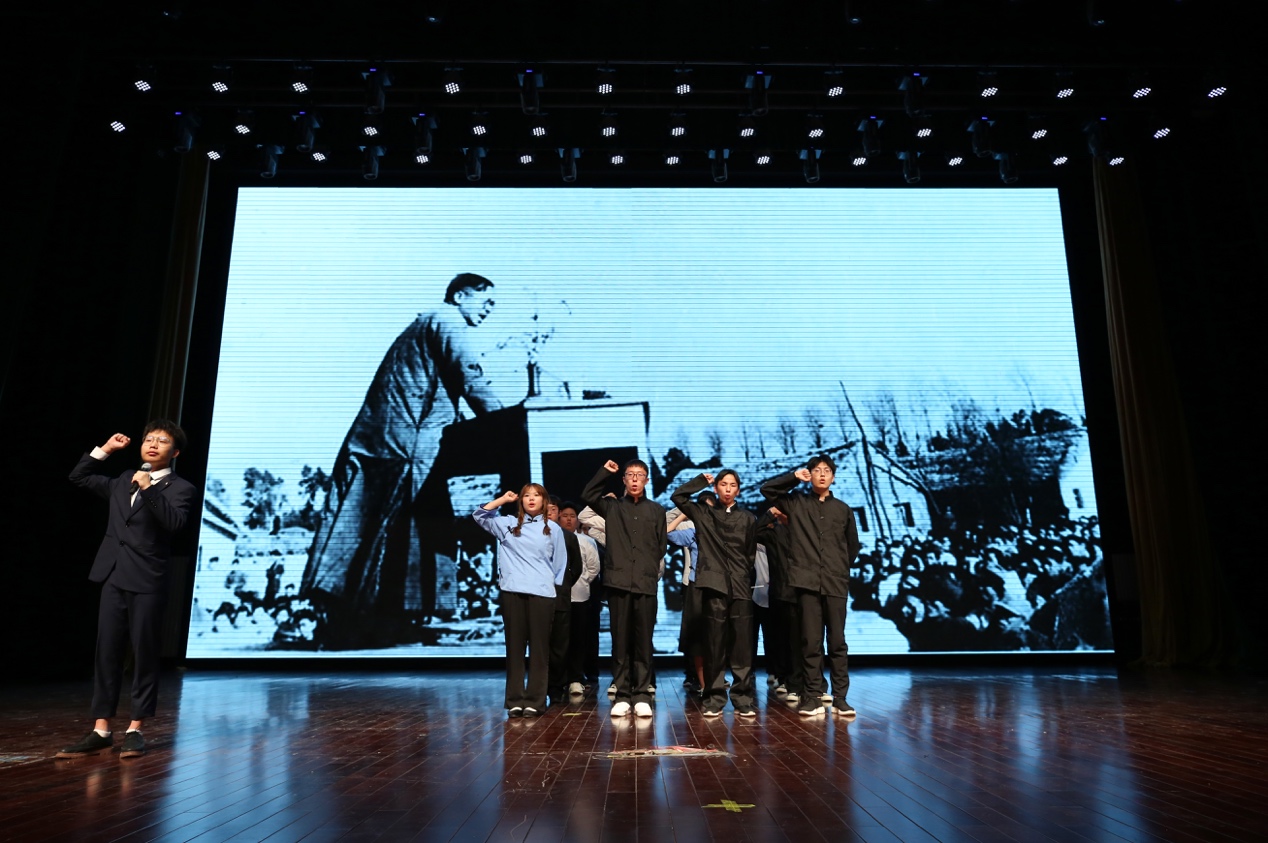 全場師生一起唱響《沒有共產黨就沒有新中國》