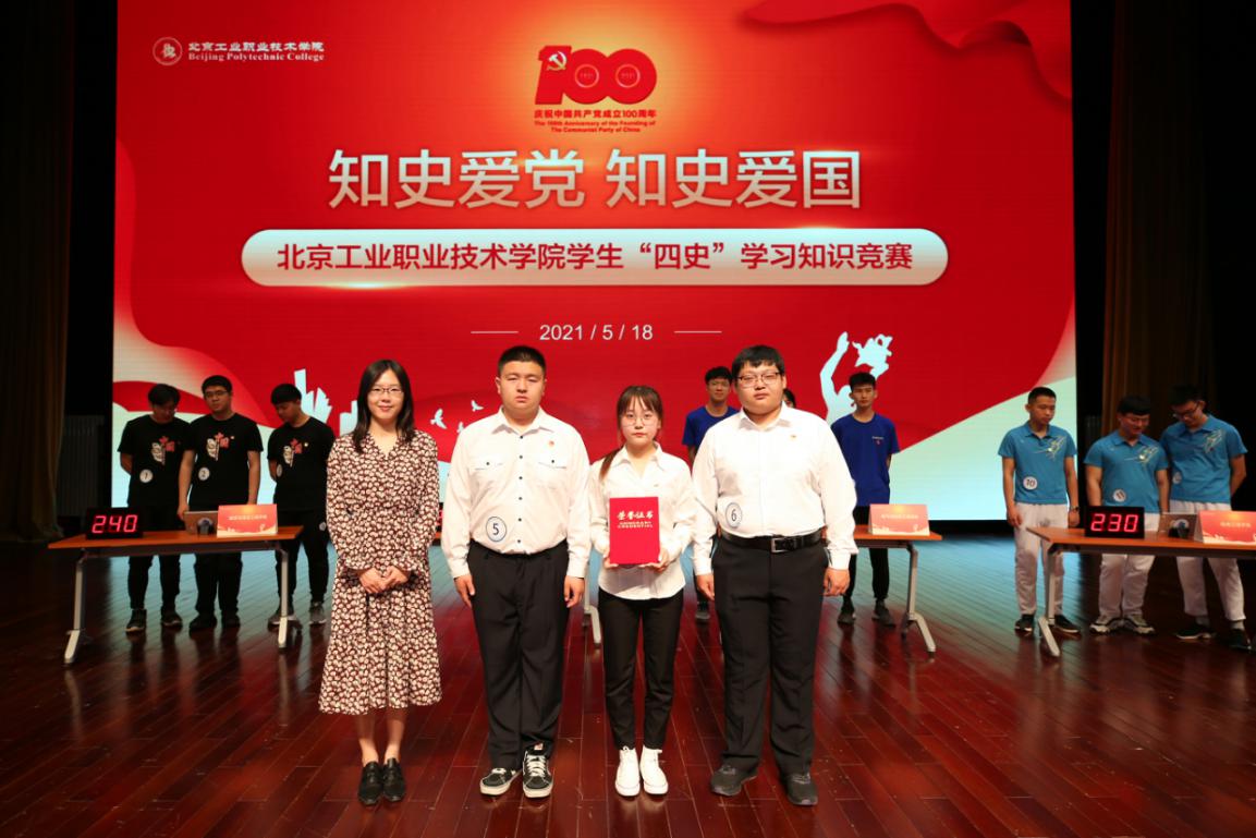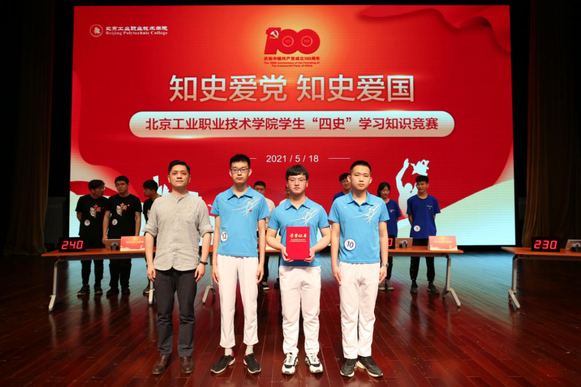為貫徹落實中央和北京市委、學校黨委關于黨史學習教育部署,使廣大青年學生更加全面、深入地學習黨的光輝歷史,深刻認識黨的豐功偉績,進一步堅定聽黨話跟黨走的決心,在學習領悟中堅定理想信念,在奮發有為中踐行初心使命,厚植愛黨愛國愛社會主義的情感,學校黨委學生工作部和團委于5月18日下午在禮堂舉辦了“知史愛黨、知史愛國——北京工業職業技術學院學生‘四史’知識競賽”決賽。全校400余名學生代表觀看了比賽。