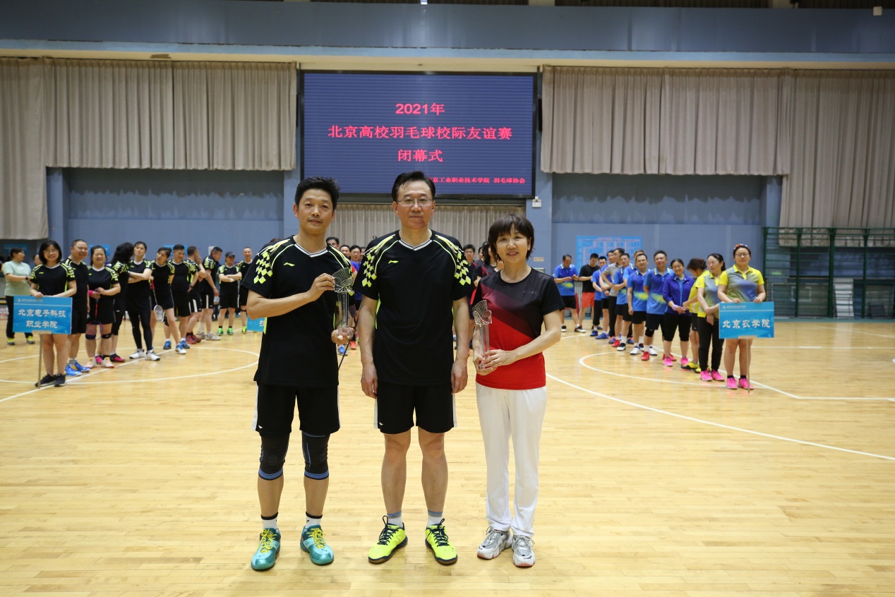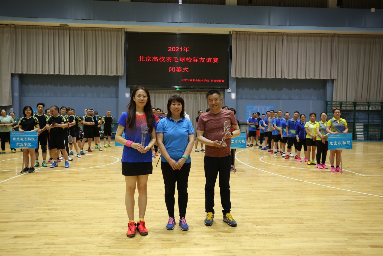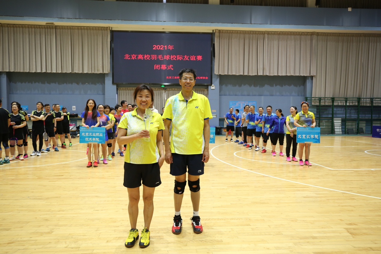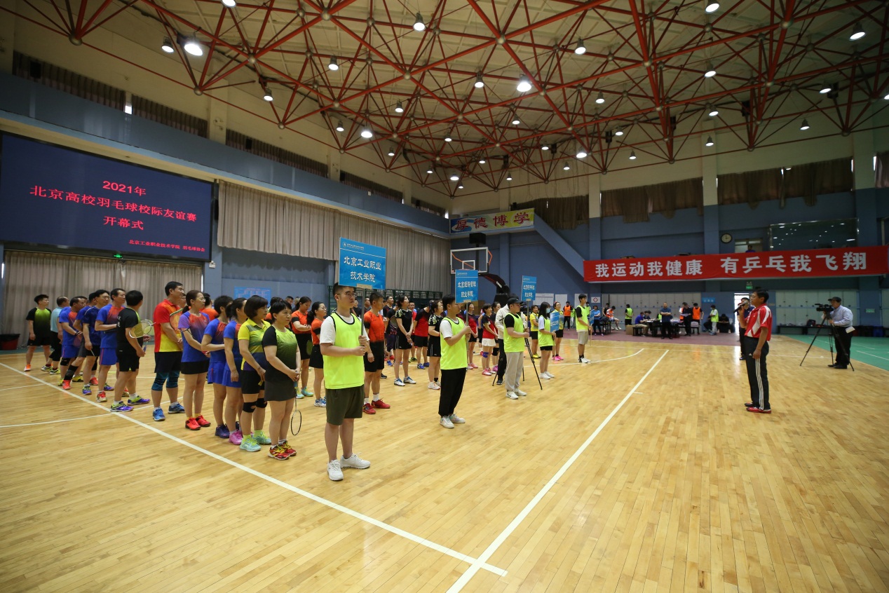 為迎接中國共產黨成立100周年,5月28日由校工會羽毛球協會舉辦的2021年北京高校羽毛球友誼賽在學校體育館舉行。來自北方工業大學、北京農學院、北京電子科技職業學院、北京經濟管理職業學院和我校的70余名教職工羽乒愛好者參加了比賽。