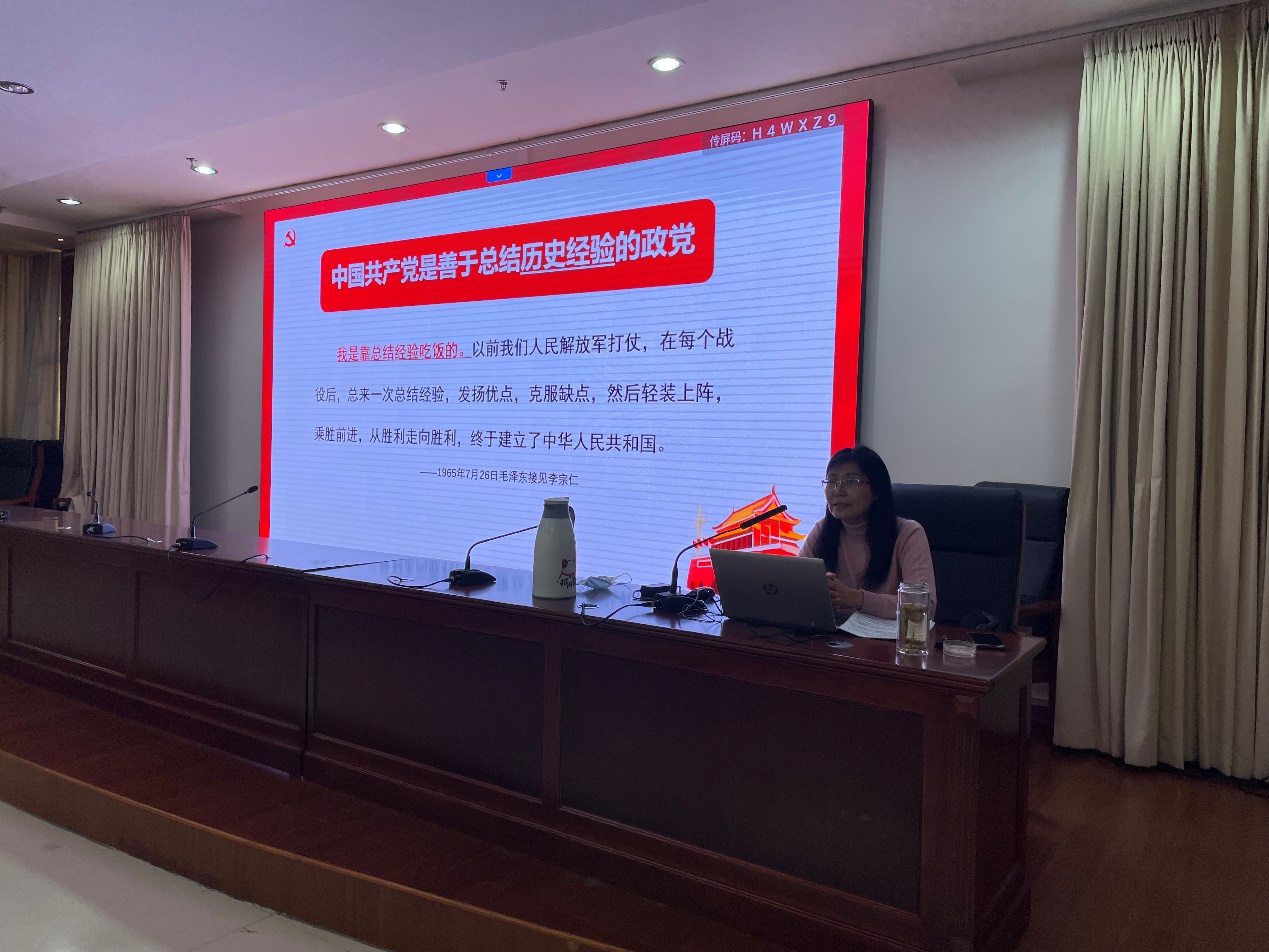 宣講會上,孫志方老師首先以“中國共產(chǎn)黨是善于總結(jié)歷史的政黨”和“解讀三個(gè)歷史決議”為導(dǎo)入,圍繞“一個(gè)根本問題”、“兩個(gè)確立”、“三次飛躍”、“四大成就”、“五個(gè)意義”和“十大經(jīng)驗(yàn)”等六個(gè)部分為同學(xué)們深入講述了“過去我們黨為什么能夠成功、未來我們黨怎樣才能繼續(xù)成功”的根本原因和目的意義。同時(shí),孫志方老師還從“《決議》的時(shí)代背景”、“堅(jiān)持唯物史觀和正確黨史觀”、 “一個(gè)主題與四個(gè)時(shí)期”、“第三次飛躍”與“兩個(gè)確立”和“歷史意義和基本經(jīng)驗(yàn)”五個(gè)方面深入解讀了黨的十九屆六中全會的豐富內(nèi)容。