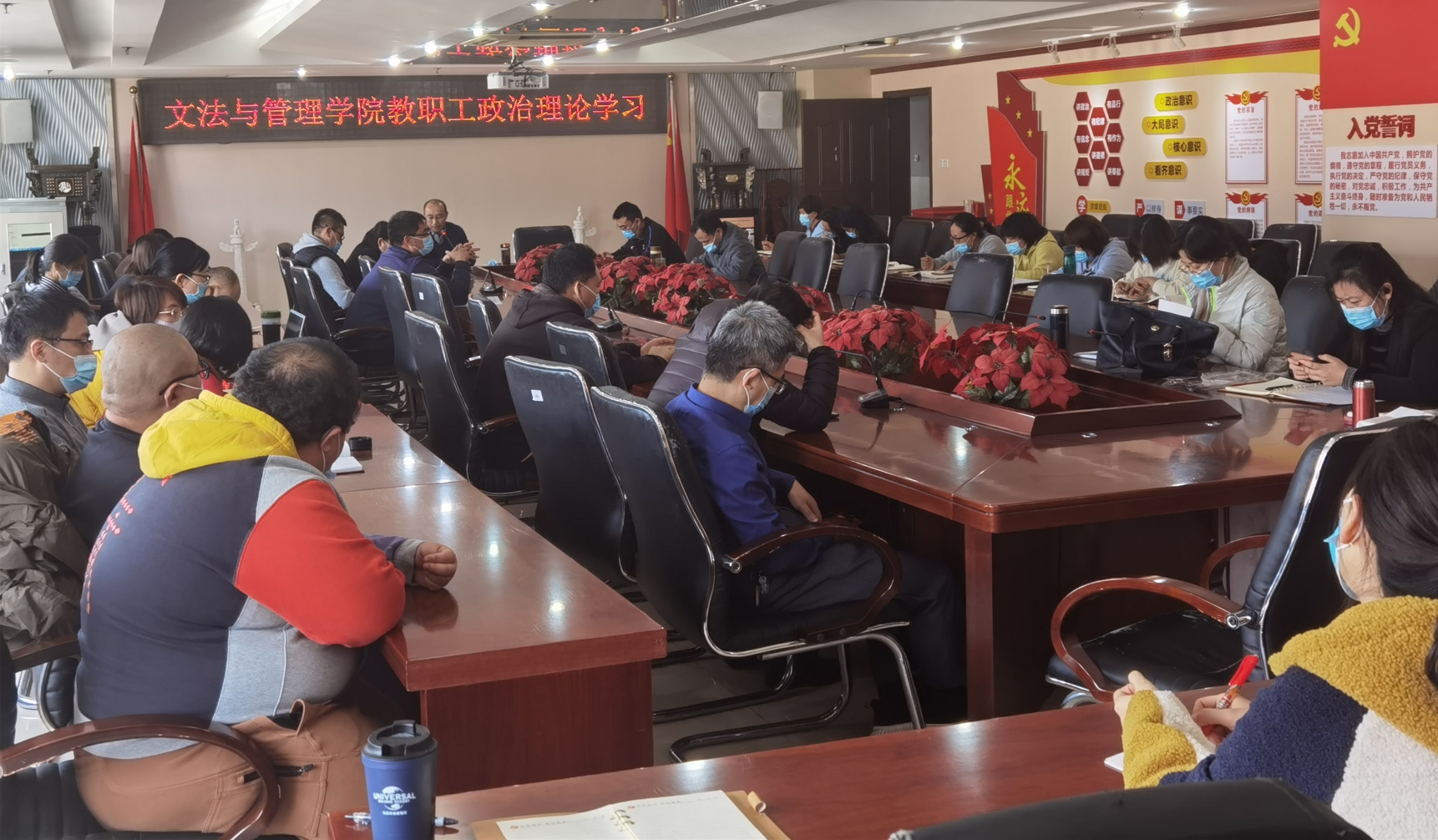 11月19日下午1點,文法與管理學(xué)院在第一會議室組織開展教職工政治理論學(xué)習(xí),學(xué)習(xí)十九屆六中全會精神。學(xué)習(xí)會由院長許保國主持,學(xué)院全體教職工參加學(xué)習(xí)。