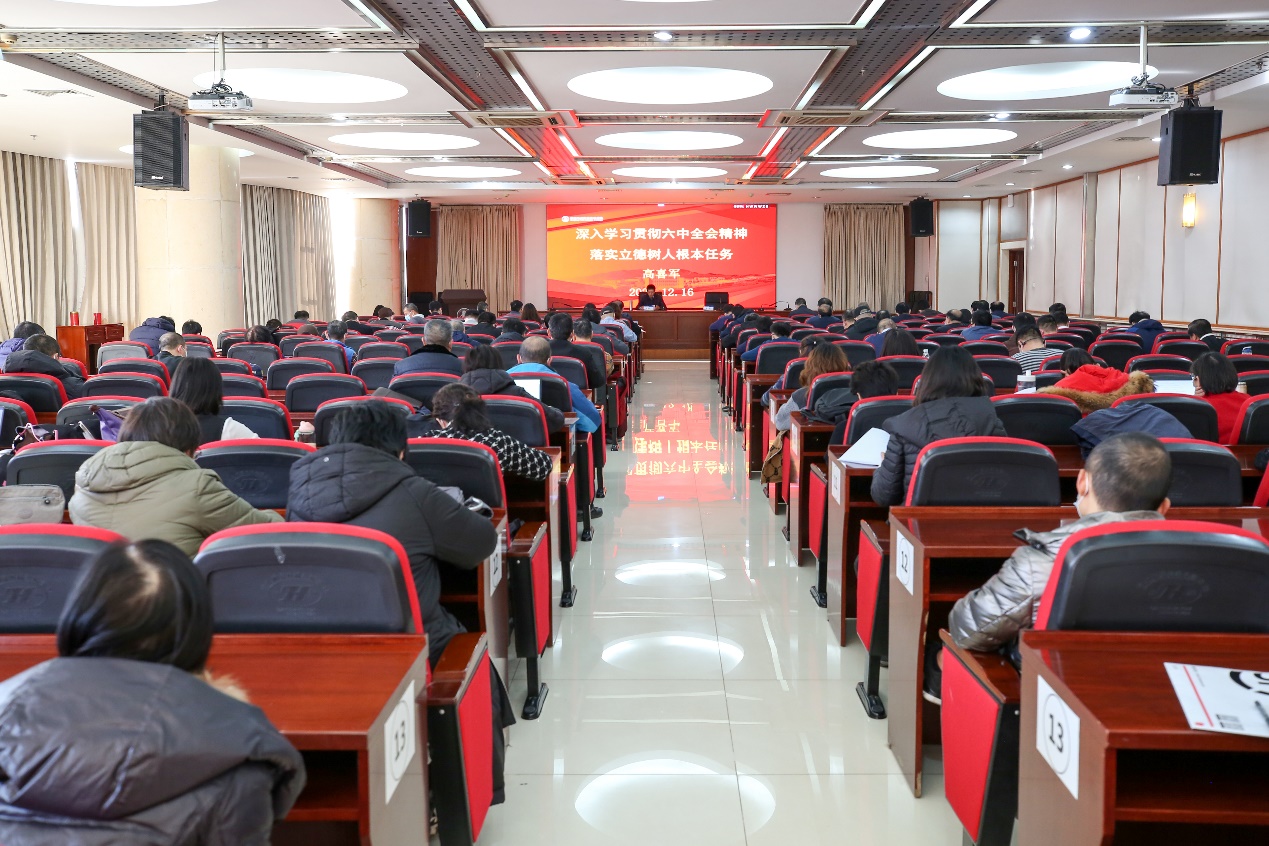 黨委書記高喜軍作了題為《深入學習貫徹六中全會精神落實立德樹人根本任務》的宣講報告。他首先指出,黨的十九屆六中全會是我們黨在成立一百周年的重要歷史時刻,在黨和人民勝利實現第一個百年奮斗目標、全面建成小康社會,正在向著全面建成社會主義現代化強國的第二個百年奮斗目標邁進的重大歷史關頭召開的。全會通過的《中共中央關于黨的百年奮斗重大成就和歷史經驗的決議》(以下簡稱《決議》),是一篇馬克思主義的綱領性文獻,是新時代中國共產黨人牢記初心使命、堅持和發展中國特色社會主義的政治宣言,是以史為鑒、開創未來、實現中華民族偉大復興的行動指南。全會取得的重大成果、作出的重大部署,對統一全黨思想和行動、在新時代更好開創黨和國家事業新局面,具有重大現實意義和深遠歷史意義。隨后,他從“深刻認識總結黨的百年奮斗重大成就和歷史經驗的重大意義”“深刻認識黨的百年奮斗的初心使命和重大成就”“深刻認識中國特色社會主義進入新時代的歷史性成就和歷史性變革”“深刻認識黨的百年奮斗的歷史意義和歷史經驗”“深刻認識以史為鑒、開創未來的重要要求”“從黨的百年奮斗歷程中汲取智慧和力量”六個部分闡述了深入學習把握六中全會精神的主要內容;從“總結歷史經驗”“新時代偉大實踐”“開創美好未來”三個角度強調了要深刻把握“兩個確立”的決定性意義;從“建好馬克思主義學院”“辦好思想政治理論課”“抓好課程思政建設”“構建學校思想政治工作體系”四個方面提出了要切實提升思想政治工作質量,把立德樹人根本任務落到實處。