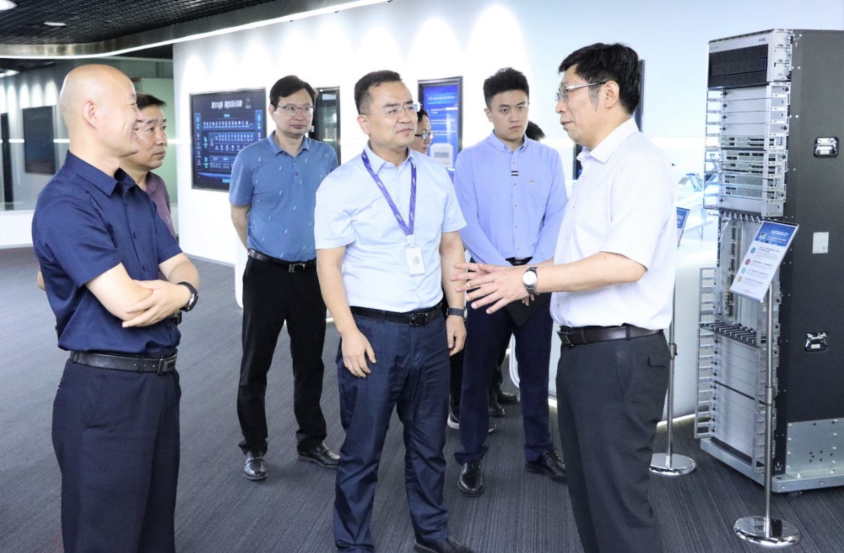北京工業職業技術學院一行參觀新華三集團北京總部,院長安江英(右一)與教育事業部總經理鄧偉(右二)現場交流