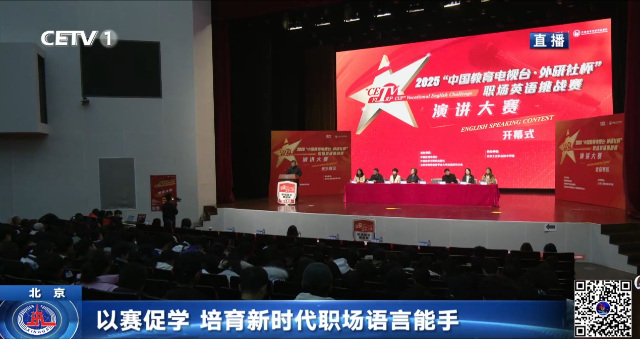 11月4日,中國教育電視臺(CETV1)《教育新聞直播間》以"以賽促學(xué)培養(yǎng)職場語言人才"為題,專題報道本次賽事。史運濤在采訪中表示,學(xué)校將持續(xù)深化“以賽促教、以賽促學(xué)、以賽促改”機制,推動外語教學(xué)與專業(yè)課程、職業(yè)標準、行業(yè)需求深度融合,為培養(yǎng)高素質(zhì)國際化技術(shù)技能人才提供更強支撐。