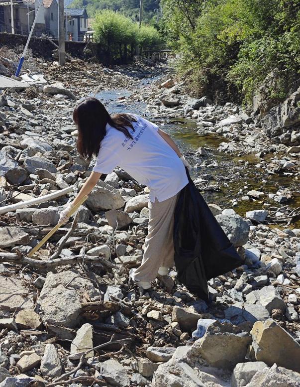 座談會結束后,建工學生黨支部書記高歌老師率領著實踐團為小龍門村清理河道垃圾。