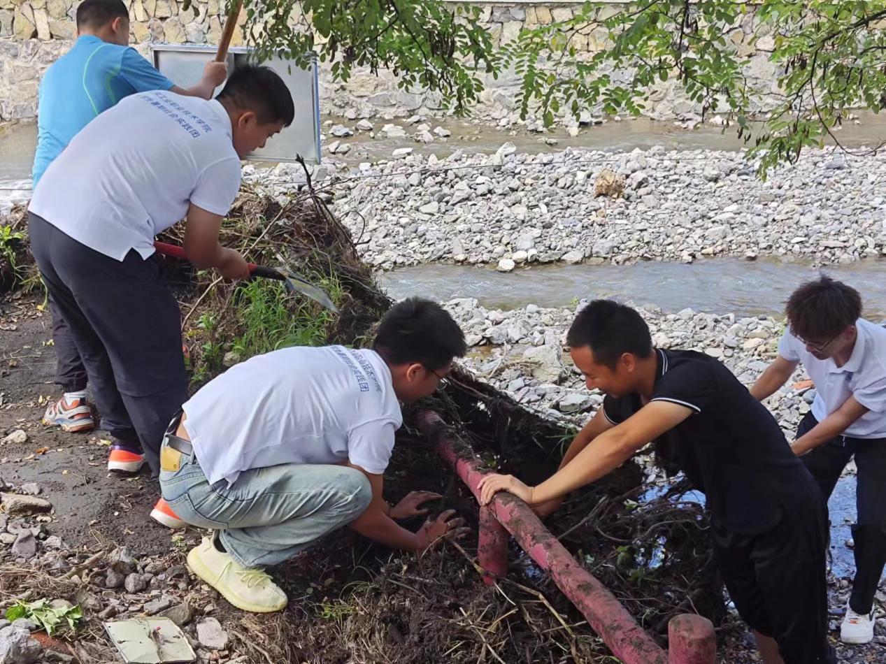 實踐團成員親身經歷到洪水災害過后的鄉村中,十分痛心,并主動請纓,決心為西達么村做出力所能及的志愿服務。會后,高歌老師帶領實踐團成員為西達么村清除雜草,清理護欄淤泥。