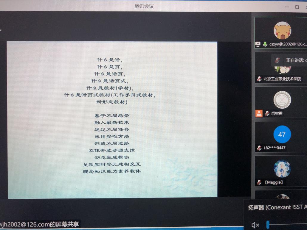 會(huì)議伊始,王軍紅副處長(zhǎng)分別從新型活頁(yè)式教材的特點(diǎn)、活頁(yè)式教材出版過(guò)程中出現(xiàn)的常見(jiàn)問(wèn)題、活頁(yè)式教材建設(shè)好的經(jīng)驗(yàn)等方面進(jìn)行了交流分享。