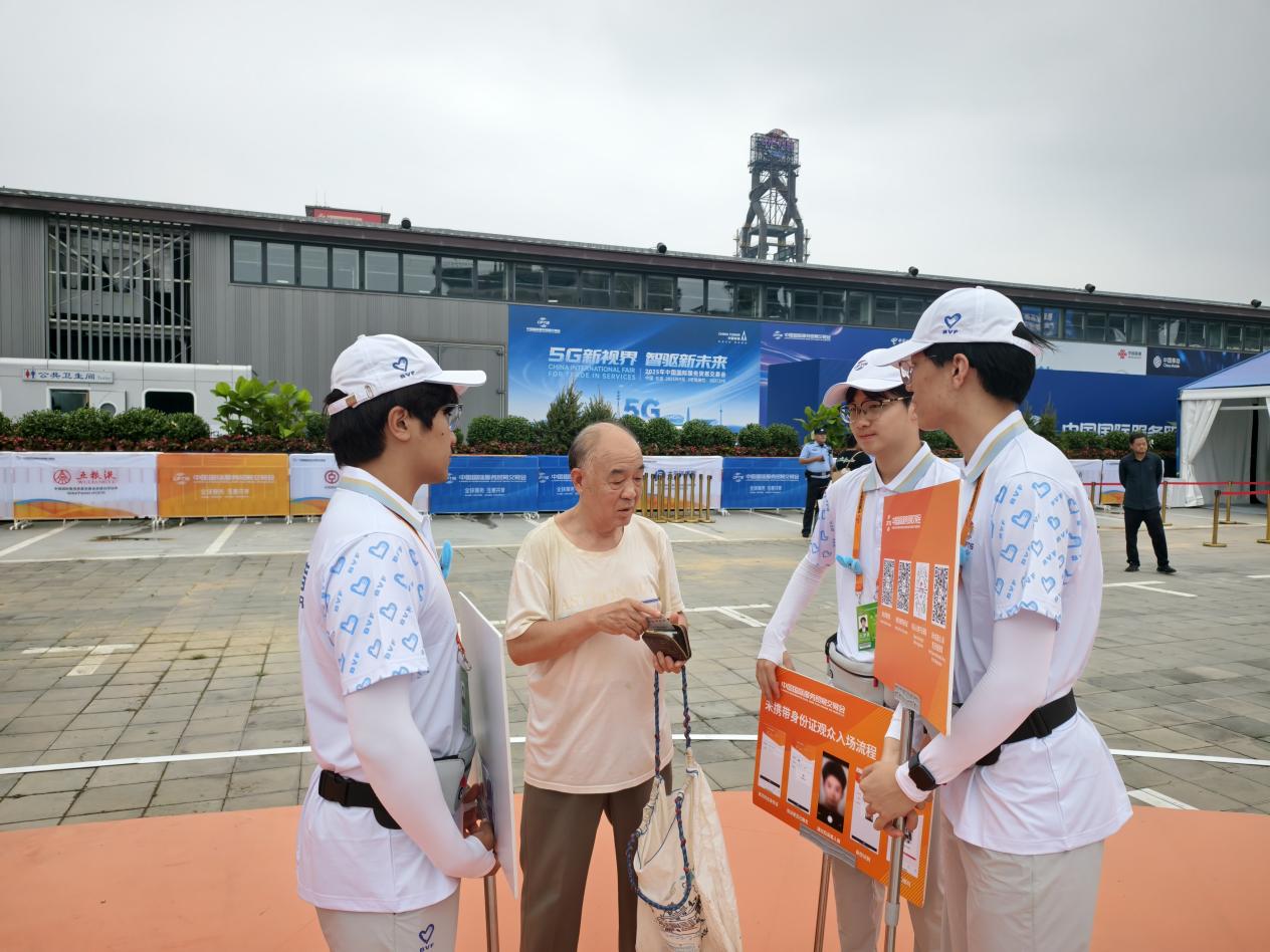 本次服貿會,我校志愿者承擔了為參觀人員提供刷臉入場線路引導、乘車指引、信息咨詢、路線引導等志愿服務。志愿者們有序分布于入場通道,高效開展入場核驗、人流引導、證件檢查等關鍵環節工作。從耐心協助觀眾驗票入場,到配合公安部門進行人證一致性核驗,志愿者們用專業的服務和溫暖的笑容,有效保障了入場流程的順暢有序,成為服貿會現場一道亮麗的“青春風景線”。