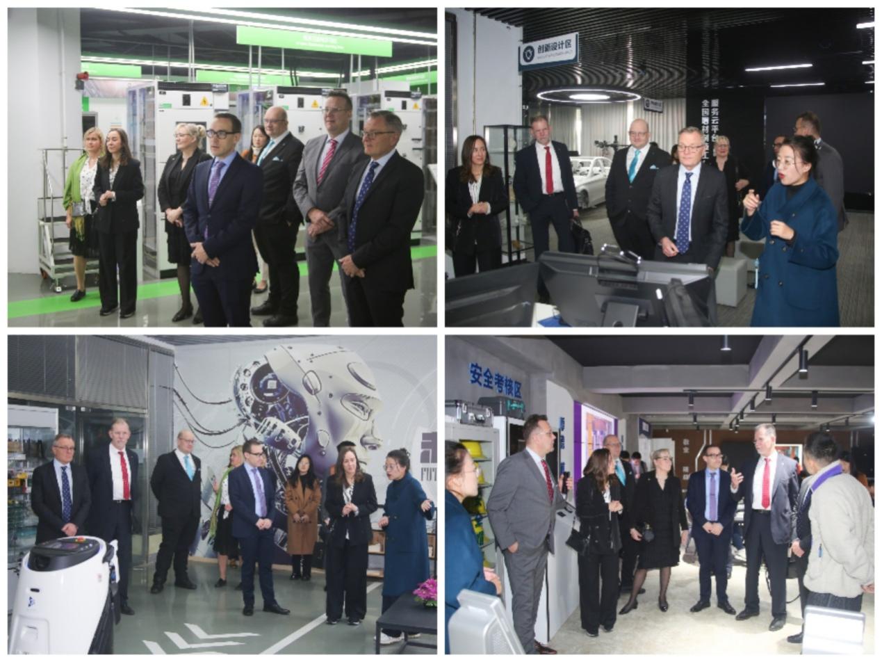 芬蘭代表團一行在周燕的陪同下依次參觀了中法能效管理應用人才培養與研究中心、汽車維修實訓中心、3D打印實訓中心、機器人實訓中心、智慧運維實訓中心、BIM實訓中心以及智慧工地實訓中心,對我校理實一體化的教學模式和優質的實訓條件給予高度贊賞和充分肯定。