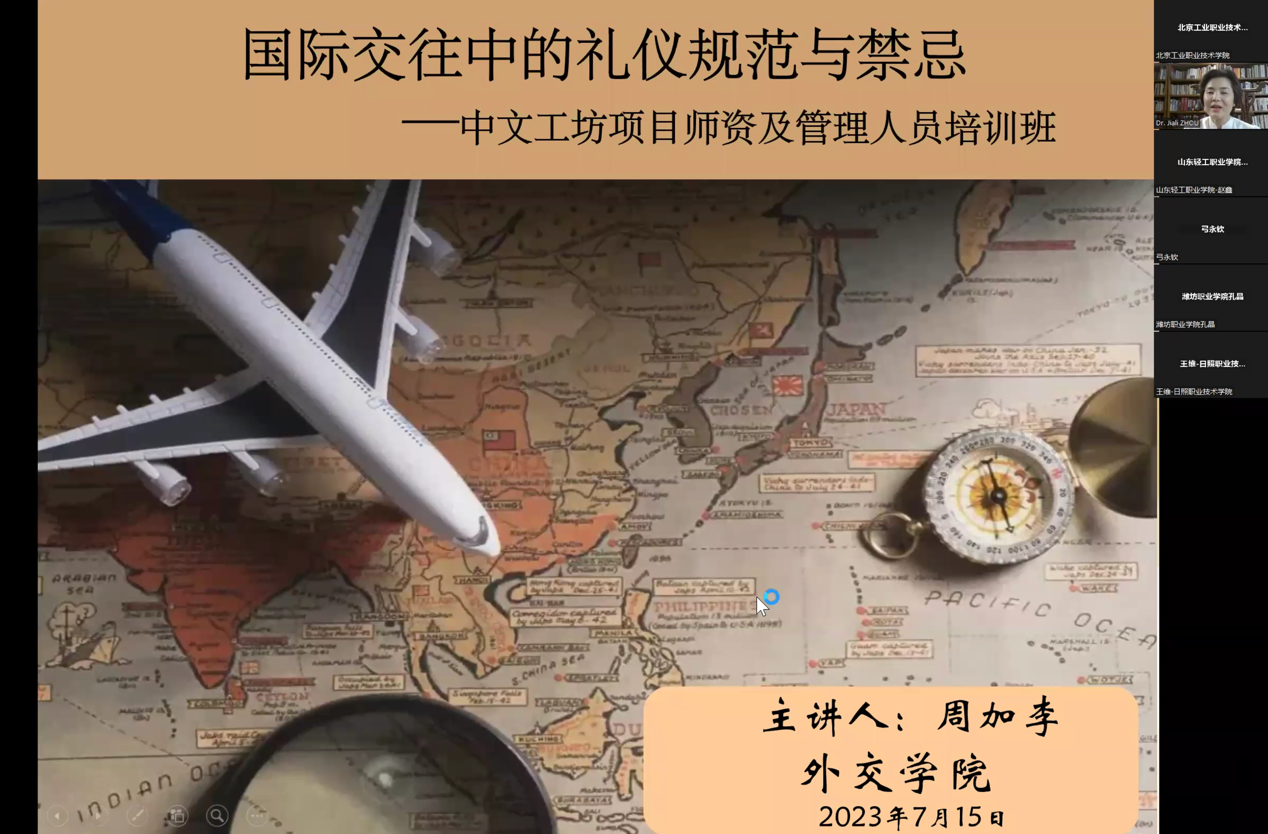 浙江師范大學(xué)國際文化與社會發(fā)展學(xué)院的孫春穎副教授的培訓(xùn)內(nèi)容為課堂管理與案例分析,通過幫助學(xué)員明確中文課堂管理的目標(biāo)和原則,對教師課堂管理領(lǐng)導(dǎo)方式和課堂管理等實際案例來提高國際中文教師對課堂管理,課程設(shè)計形式以及 “中文+職業(yè)技能”教育教學(xué)發(fā)展的新思路。