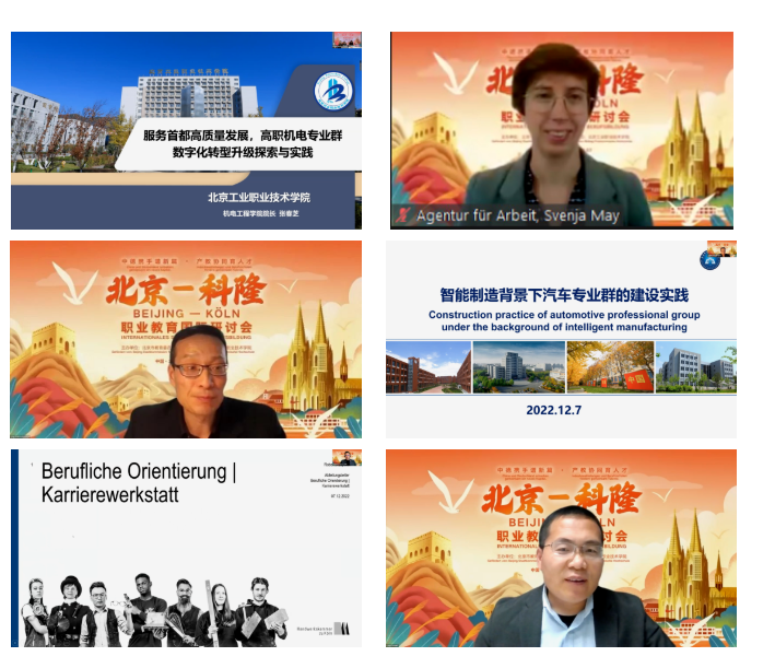 德國科隆市政府教育部門、科隆市手工業協會、科隆工商業協會、科隆市職業介紹所、北京市政府外辦、北京市教委、北京電子科技職業學院、北京經濟管理職業學院、北京財貿職業學院、北京農業職業學院、北京勞動保障職業學院、北京信息職業技術學院、北京青年政治學院、北京豐臺區職業教育中心學校、北京昌平職業學校、北京市西門子西伯樂斯電子有限公司等中外20余家單位以“線上+線下”方式參會。