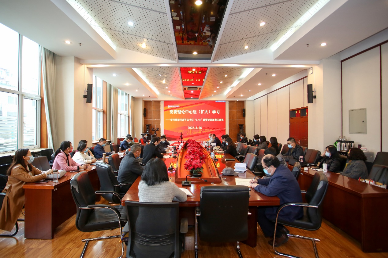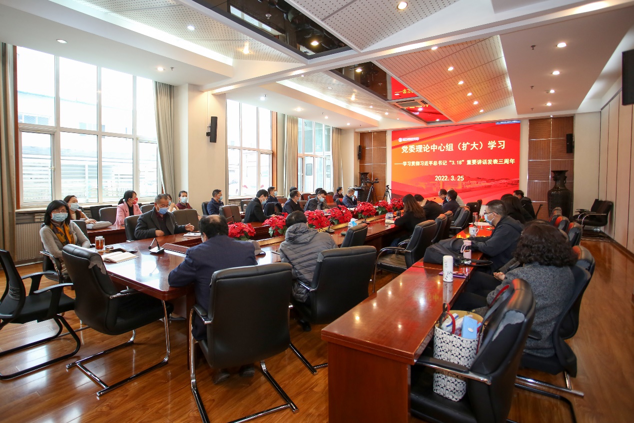 擴大學習分線下線上兩個會場。黨委理論中心組成員,相關職能部門負責人,馬院全體教師參加線下會議。黨總支書記(直屬黨支部書記)、二級學院院長和副院長、中層干部以及學校課程思政建設負責人通過騰訊會議線上參會。
