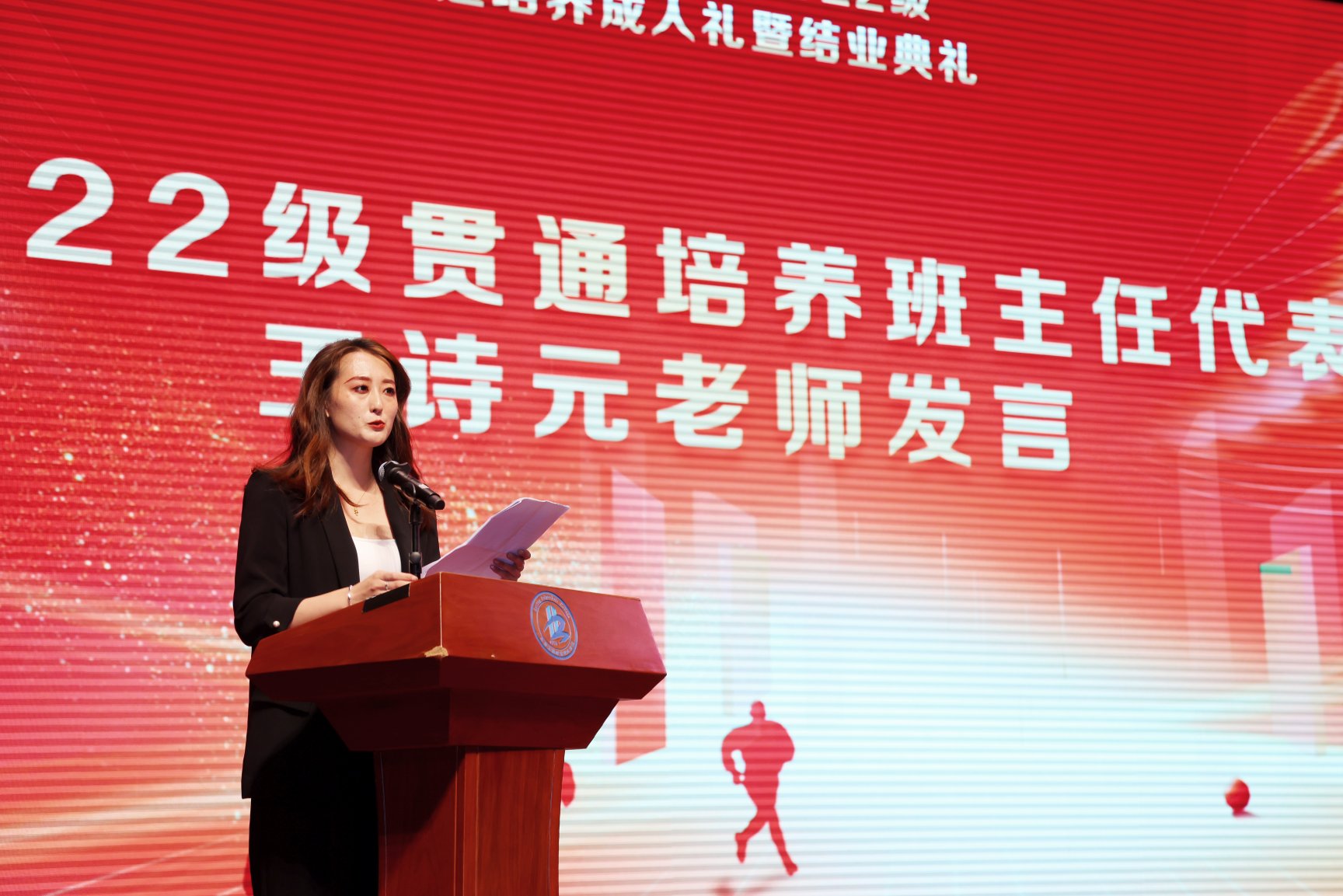 隨后,舉行了2022級貫通培養優秀結業生頒獎和2022級貫通培養班主任答謝儀式。班主任王詩元代表老師發言,她為學生送上一份叮囑,一份期盼,希望同學們可以擁抱有曲線的人生。同時,放眼未來的無限性,追逐不設限的人生。