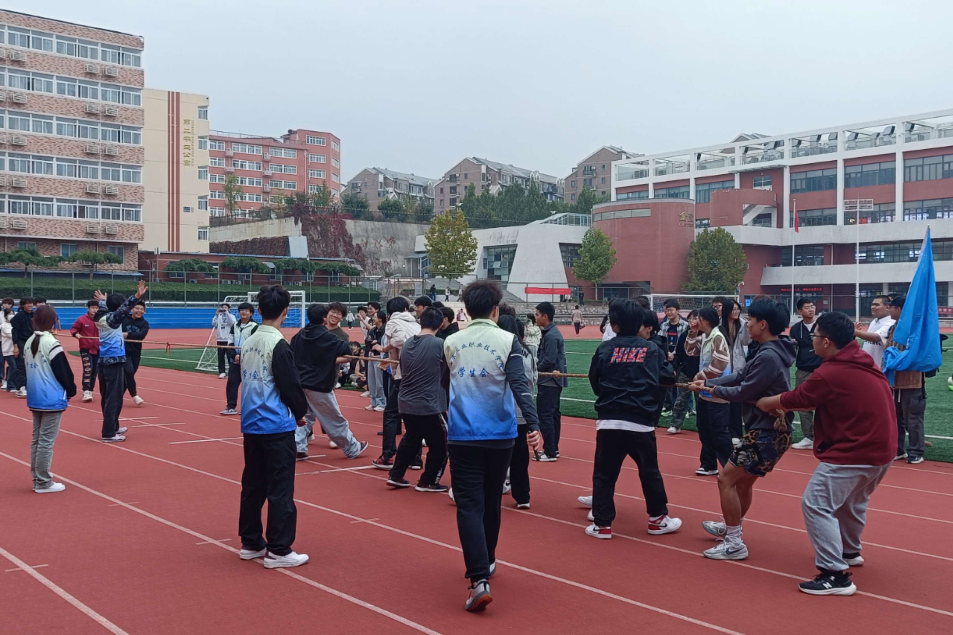 在學(xué)校愛國主義教育月期間,為增強(qiáng)我校學(xué)生的團(tuán)隊(duì)意識(shí)和集體凝聚力,推動(dòng)學(xué)生體育精神和體育運(yùn)動(dòng)習(xí)慣的養(yǎng)成,助力形成北工院健康向上、團(tuán)結(jié)奮進(jìn)的校園文化氛圍。10月17日、23日,校團(tuán)委舉辦了“青春聚力,‘拔’動(dòng)學(xué)生激情”校院兩級(jí)校園拔河賽。