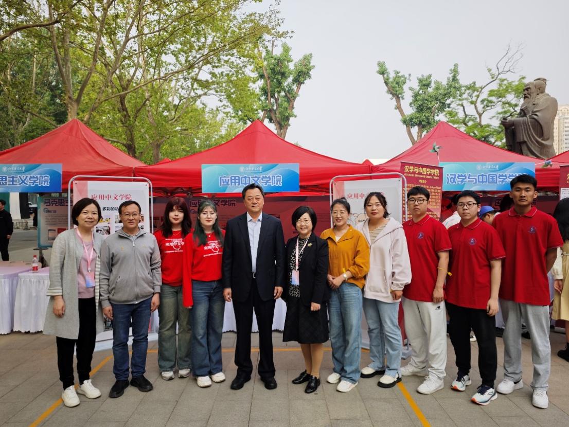 春風和煦,綠意盎然,第十九屆世界文化節游園會于4月27日在北京語言大學盛大開幕,來自103個國家和地區的青年及社會各界人士同聚北語,感受文化交融的無限魅力,聆聽世界脈動的和諧樂章。我校受邀參加文化節并與北京語言大學應用中文學院共同展示雙方合作項目——“中文+職業技能”特色項目。北京語言大學黨委書記倪海東、應用中文學院書記周鑫、應用中文學院院長蘇英霞等領導蒞臨展位,駐足觀看我校職業技能展示,并表示將一如既往繼續支持兩校“中文+職業技能”合作項目。