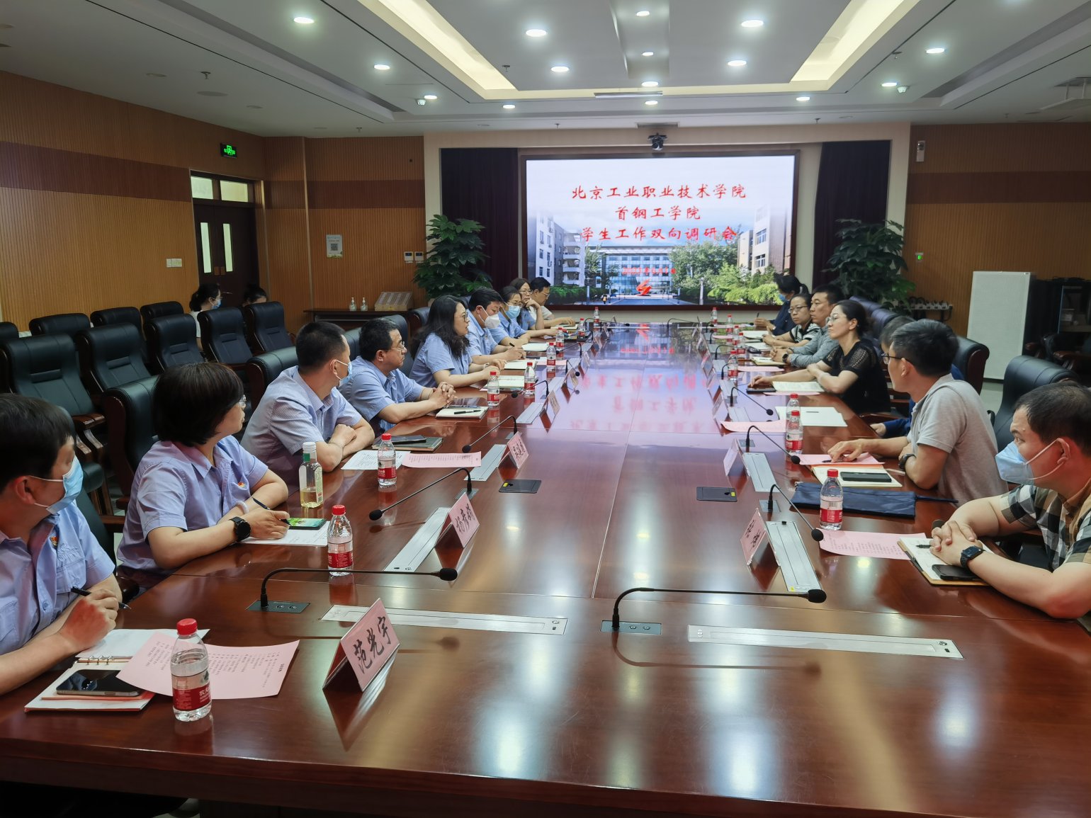 為深入開展學習貫徹習近平新時代中國特色社會主義思想主題教育,在全黨大興調查研究之際,校黨委常委、副院長沈瑩帶領學生工作部部長梁文學、招生就業處副處長侯瑾、團委副書記趙萌、二級學院黨總支副書記以及相關工作人員,于2023年6月1日赴首鋼工學院開展有關學生教育管理工作特色、班主任輔導員隊伍建設、就業等工作的調查研究工作,首鋼工學院副院長周伯久、學生處處長宋晨輝、各二級學院院長、副院長以及相關負責人參加調研。