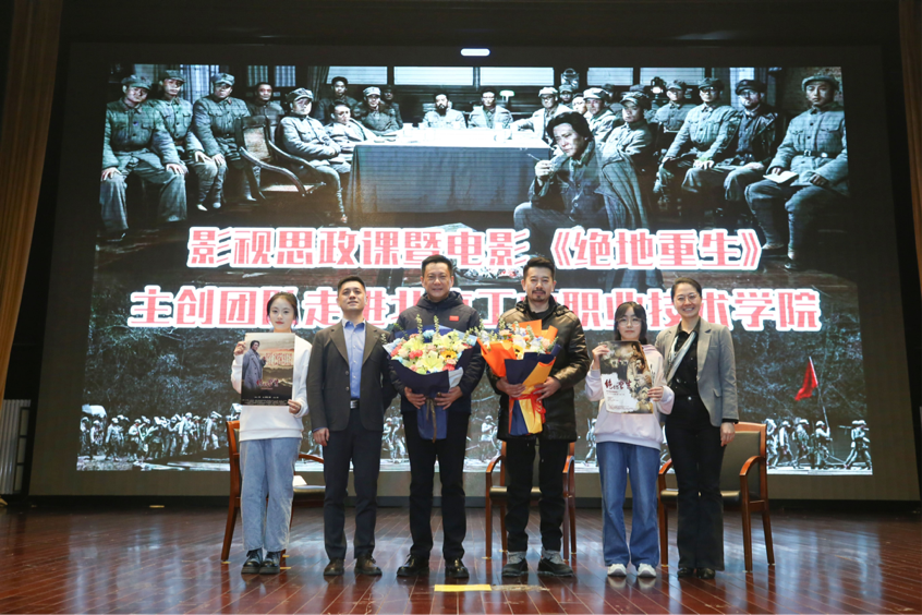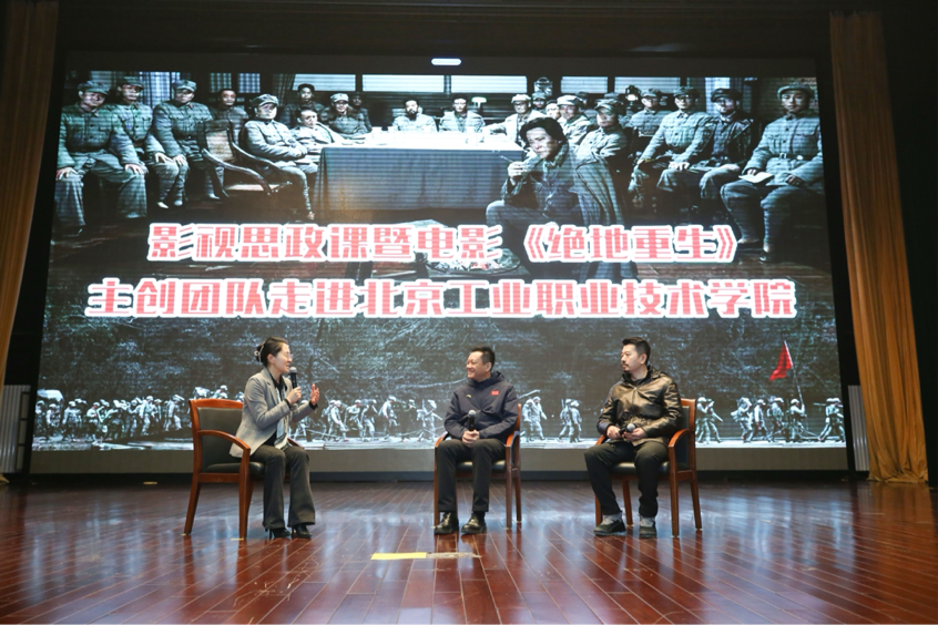 12月11日一堂別開生面的電影思政課---《絕地重生》主創團隊走進北京工業職業技術學院在學校禮堂開講。電影《絕地重生》中毛澤東的飾演者國家一級演員王斑、周恩來的飾演者侯祥玲來到學校和同學們進行面對面交流,以電影為媒介走進那段崢嶸歲月感悟蘊含其中的偉大精神力量。校黨委常委、副院長沈瑩在交流和觀影前,結合影片內容為同學們講授了以民主集中制為主題的思政課。