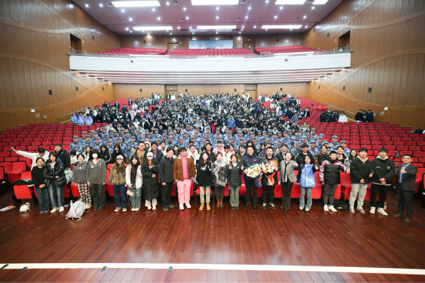 活動伊始,沈瑩代表學校對電影《絕地重生》主創團隊的到來表示熱烈歡迎。她在講課中談到,民主集中制作為一種重要的組織原則,不僅貫穿于影片的多個關鍵情節,更是其精神內核的重要組成部分。她為同學們講解了民主集中制的內涵、體現以及影片中民主集中制的原則。最后,留給大家幾個問題在觀影過程中去思考。同時,她希望同學們不僅能夠更深刻地理解民主集中制的內涵和重要性,并在觀影過程中有所啟發,將這一原則應用到實際生活和學習中去。