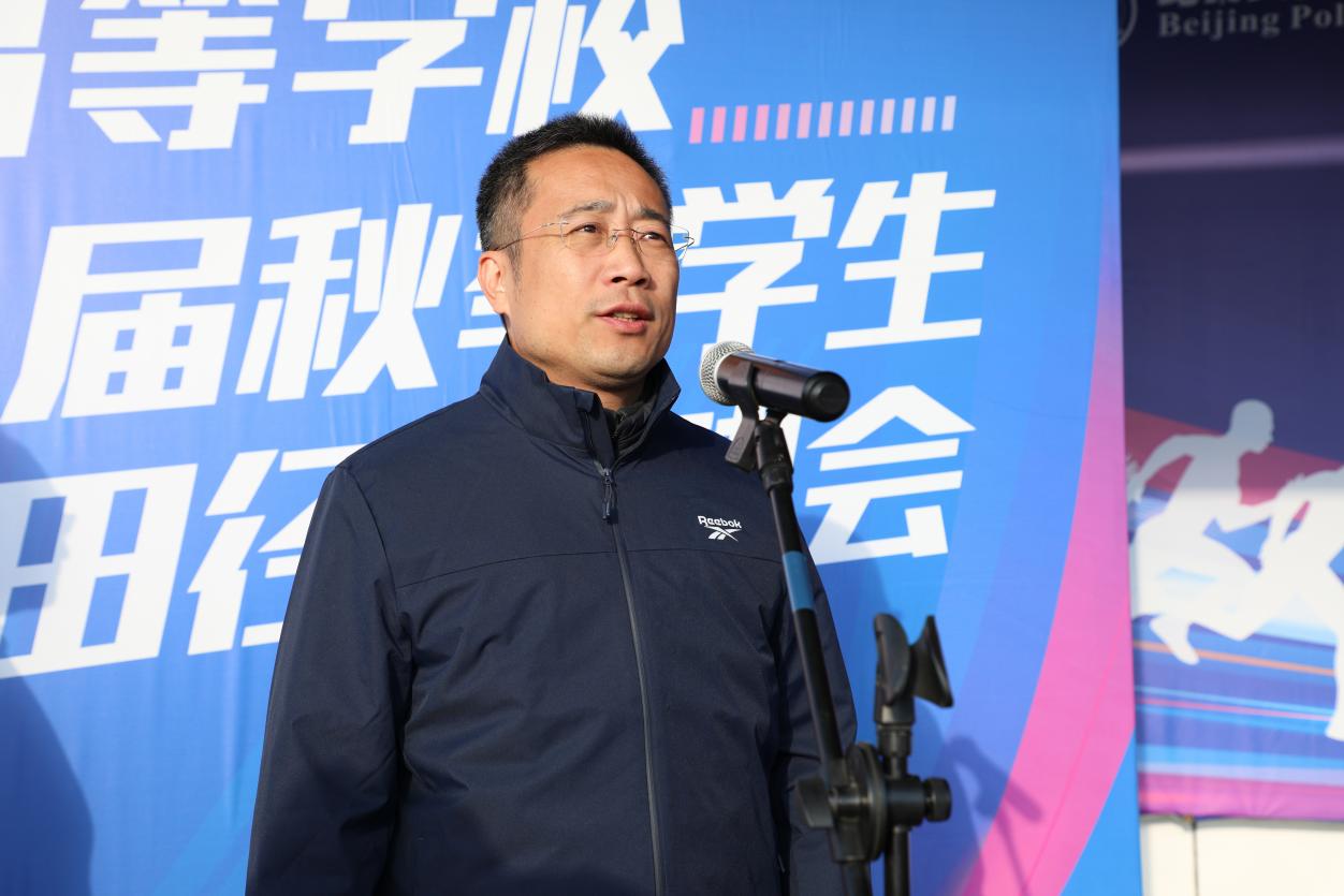 柳長安代表學校致歡迎辭,向蒞臨盛會的各級領導、嘉賓及參賽高校師生表示熱烈歡迎,向長期支持學校發展的各界人士和賽事籌備人員致以誠摯感謝。他介紹,作為全國職業教育改革的先行者,學校首期國家“雙高”建設、北京市“特高”建設均以“優秀”等次通過驗收,現已入選國家“雙高”第二期建設單位,連續三年在市屬高校分類發展績效考核中榮獲“優秀”,有信心呈現一場“安全、有序、精彩、難忘”的體育盛事。他表示,首都高校秋季學生田徑運動會歷經16載傳承,已成為展示體育育人成果、促進校際交流融合的重要平臺。本屆賽事,眾多高等職業院校的健兒們與普通本科院校的同學們同場競技,這充分體現了職業教育與普通教育相互融通、共同發展的時代趨勢。他鼓勵運動員發揚“更高、更快、更強、更團結”的奧林匹克精神,展現當代大學生的蓬勃朝氣。