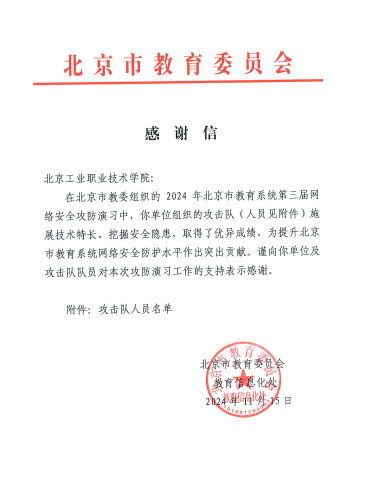 自2022年起,在信息中心的大力支持下,我校攻擊隊已連續三年參加北京市教育系統安全攻防演習。值得一提的是,本次演習實現了歷史性的成績突破。這一成績的取得,離不開我校對信息安全教育的高度重視,以及信息工程學院對網絡安全人才持續不懈的培養。網絡教研室通過組織學生參與各類網絡安全比賽,以賽促學,以練推學,不僅提升了學生的實踐能力,更為網絡安全領域輸送了一批批高素質的專業人才。