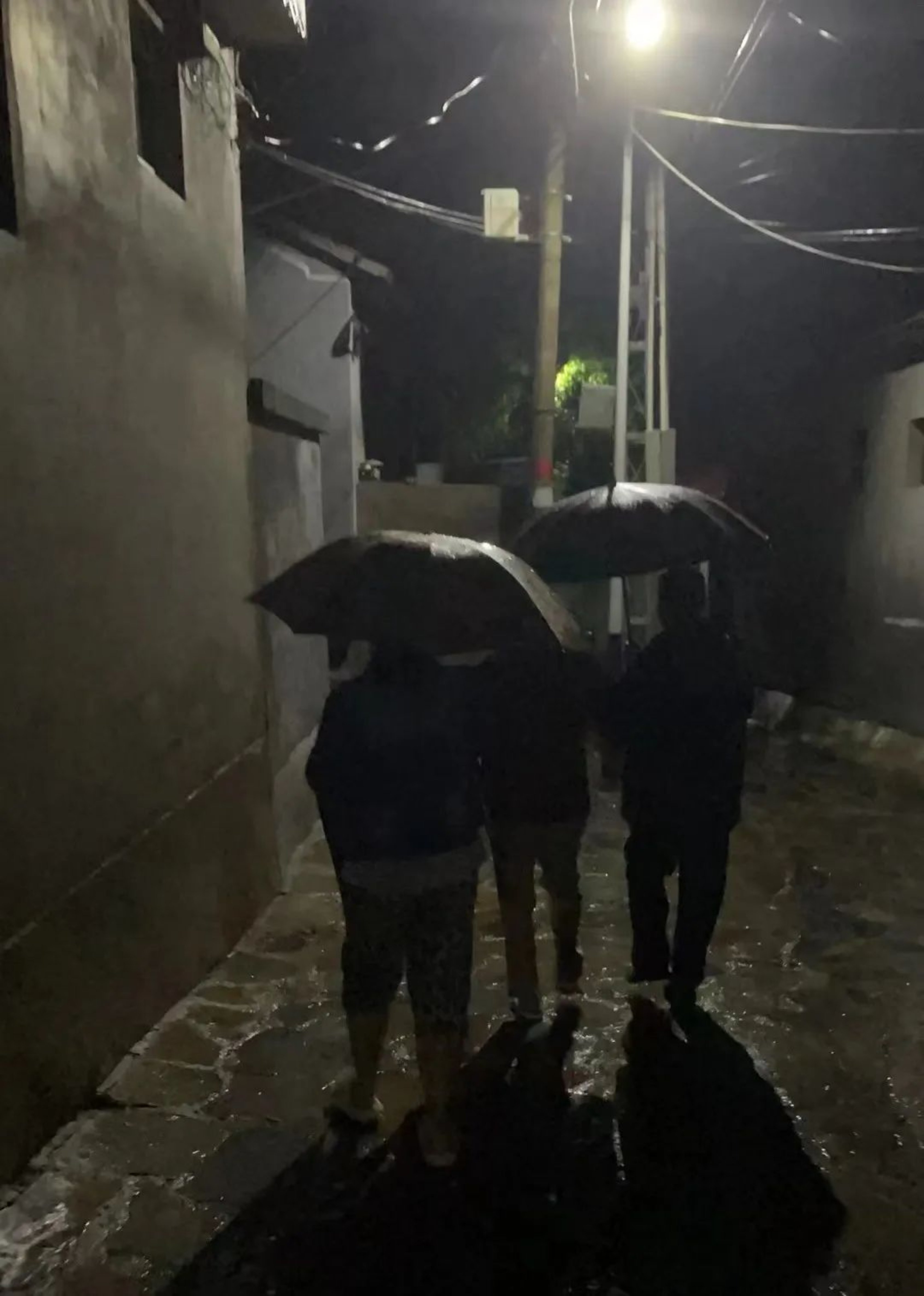 在村委會指揮調度的陳甜聽著嘩嘩的雨聲,心想“壞了,雨更大了”,暴雨如注,滾石、樹木隨著洪水傾瀉而下,他和村書記張國珍立馬跑到街上查看,發現村內的排洪溝已經被滾石、樹木、泥沙填滿,洪水出槽,村莊水位暴漲。他和村兩委連夜轉移險區的村民,將他們安置在應急避難場所和安全區域,緊接著帶著村兩委工作人員繼續裝沙袋,將被漫過的擋口和被沖垮的河堤進行填堵,當最后一袋沙袋堆在擋口時,已經是凌晨5點半,天放亮了。陳甜的衣服已經被雨水和汗水浸透,連夜冒雨勞作,導致他的腸胃著涼,上吐下瀉,在村書記家吃了幾片胃藥,回去換了干凈的衣服、吃過簡單的早餐后,他又挨家挨戶查看村民和房屋的情況。