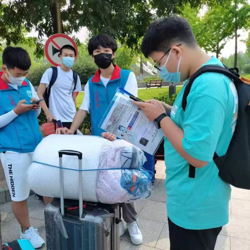 志愿者的努力顯然在閃光。因為赴京路途遙遠,機電學院的新生徐昊選擇只身到校報到。“到目前為止,沒有什么不順利的,志愿者隨處可見,一切都有學長學姐幫忙指引,班主任也隨時可以聯系。從一進校園,我就找到了歸屬感。期待未來在學校的學習與生活。”