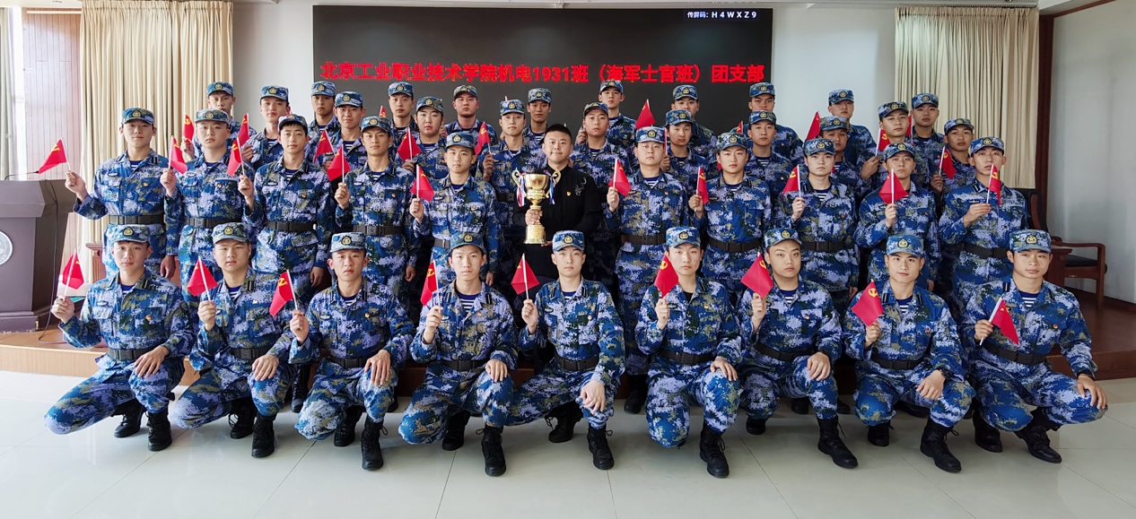 機電1931班(2019級海軍士官班)團支部是由40名海軍士官生組成,全部為共青團員,并全部提交了入黨申請書。目前,有預備黨員1人,入黨積極分子35人。團支部自成立以來,在校團委和機電工程學院黨總支的指導下,深入貫徹學習習近平新時代中國特色社會主義思想,認真落實“三會兩制一課”,加強支部建設、嚴格團員教育管理,不斷堅定理想信念,引導支部團員自覺做社會主義核心價值觀的弘揚者、踐行者。特別是黨史學習教育開展以來,支部以“團小組”形式學習黨史,以團日活動為陣地,通過專題學習會、清明祭英烈、紅色觀影會、紅歌傳唱會等特色活動,在支部內掀起黨史學習教育熱潮。全體團員均注冊為志愿者,參與了2022北京冬奧會、石景山區慶祝中國共產黨成立100周年、校內垃圾分類以及學校各大重要活動的志愿服務工作。在支部全體團員的努力下,機電1931班(2019級海軍士官班)團支部課程通過率、體測合格率、青年大學習參與率、支部入黨申請書提交率、黨課結業率、第二課堂參與率等均在全校名列前茅,充分展現了新時代北工院學子的青春風貌。2020年,團支部被評選為“北京市先進團支部”和“北京市先進班集體”,被校團委評為“五星級團支部”。榮獲2019-2020年度北京工業職業技術學院“優秀團支部”、2020-2021年度北京工業職業技術學院“先進班集體”和2020-2021年度“先鋒杯”優秀團支部等榮譽。