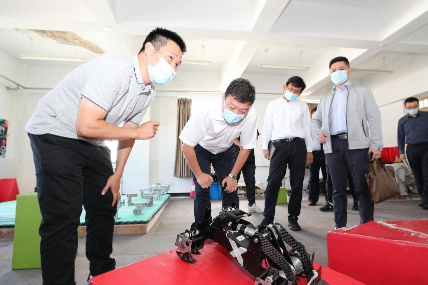 劉炳全部長(zhǎng)一行先后參觀了我校大學(xué)生創(chuàng)業(yè)園、機(jī)器人社團(tuán)ROBOTAC賽事訓(xùn)練場(chǎng)地、無(wú)人機(jī)社團(tuán)訓(xùn)練場(chǎng)地,深入了解我校共青團(tuán)指導(dǎo)青年創(chuàng)新創(chuàng)業(yè)和學(xué)校專(zhuān)業(yè)社團(tuán)服務(wù)學(xué)生成長(zhǎng)成才、服務(wù)“鄉(xiāng)村振興”等情況。