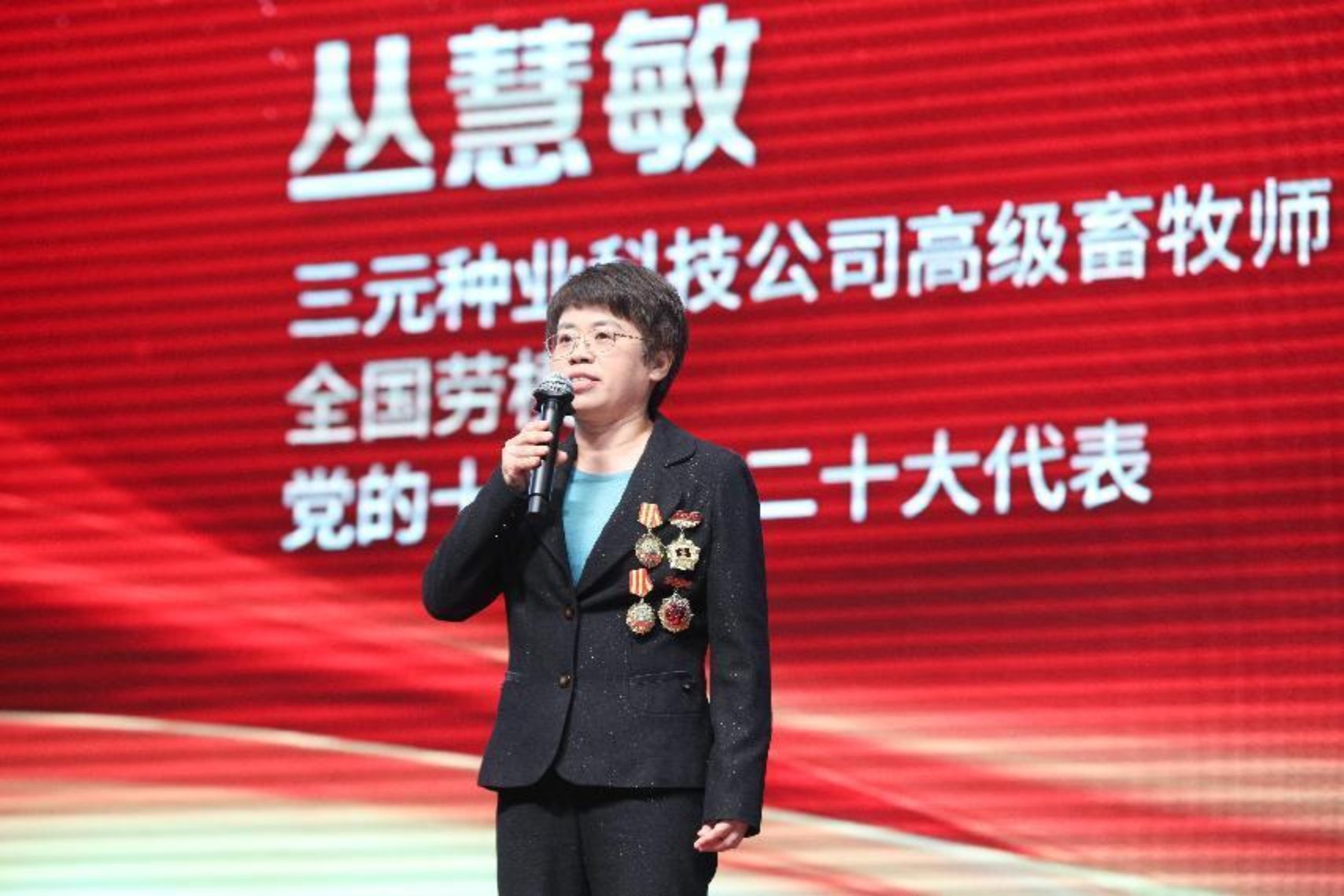 三元種業(yè)科技公司高級畜牧師叢慧敏是扎根一線的高材生牛倌,是從牛棚里走出來的全國勞模,是黨的十九大和二十大代表。她常年奔走于牧場牛棚和實驗室之間,與牛為伴,深耕乳業(yè)二十載。“20多年過去,每當(dāng)提起奶牛,我的精氣神還會立馬高漲。對我來說,奶牛已成為我生命中不可缺少的一部分。作為一名奶業(yè)科技工作者,我想積極響應(yīng)黨的二十大號召,深入貫徹實施種業(yè)振興行動,確保中國人的飯碗牢牢端在自己手中,為中國奶農(nóng)做點事,為民族種業(yè)出點力,讓廣大人民喝上好奶,這就是我想用一輩子來完成的最大心愿。”