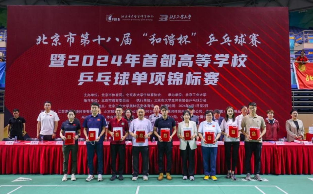 6月1-2日,北京市第18屆“和諧杯”乒乓球賽暨2024年首都高等學校乒乓球單項錦標賽在北京工業大學奧林匹克體育館舉行。比賽由北京體育局、北京大學生體協主辦主辦,共有首都58所院校、580名男女運動員參賽。經過逐輪拼搏,我校獲得男子雙打亞軍和男子單打亞軍。