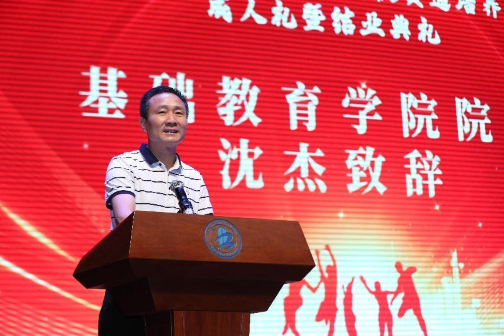 2023年6月18日,由基礎教育學院主辦,學校關心下一代工作委員會協辦的2021級貫通培養成人禮暨結業典禮在禮堂隆重舉行。基礎教育學院2021級學生及家長500余人參加本次活動。基礎教育學院黨總支書記王巍、院長沈杰、副書記史偉、班主任和任課老師參加典禮。