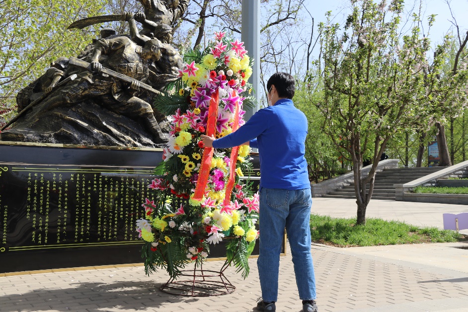 金燈山英烈雕塑廣場,學員們認真聆聽 “金燈山戰斗”革命故事,懷著對革命先烈無限崇敬的心情向英烈敬獻花籃并默哀致敬。
