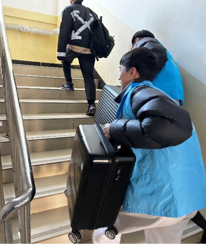建筑與測繪工程學院各團支部組織團員青年幫助返校同學搬行李、曬被子
