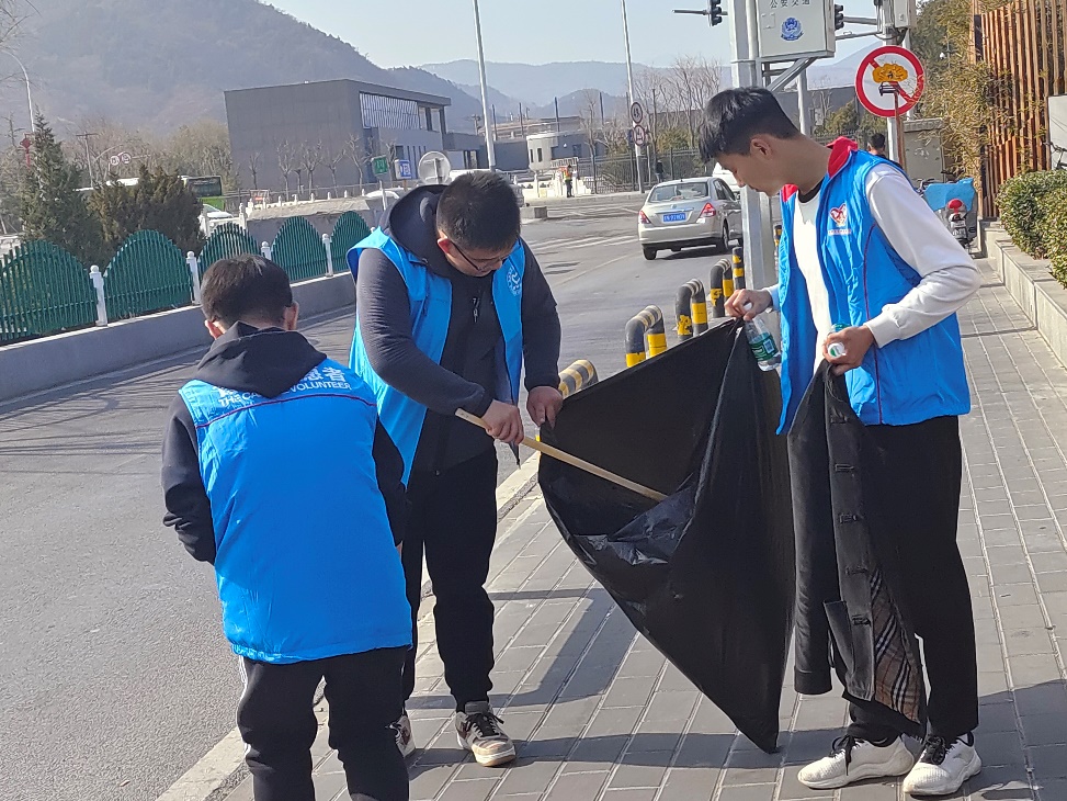 校團委組織學生志愿者來到北京市城市河湖管理處三家店引水渠開展學雷鋒義務勞動。同們學在引水渠東西岸所在區域清理煙頭、紙屑、飲料瓶等垃圾,為綠色北京貢獻自己的一份力量。
