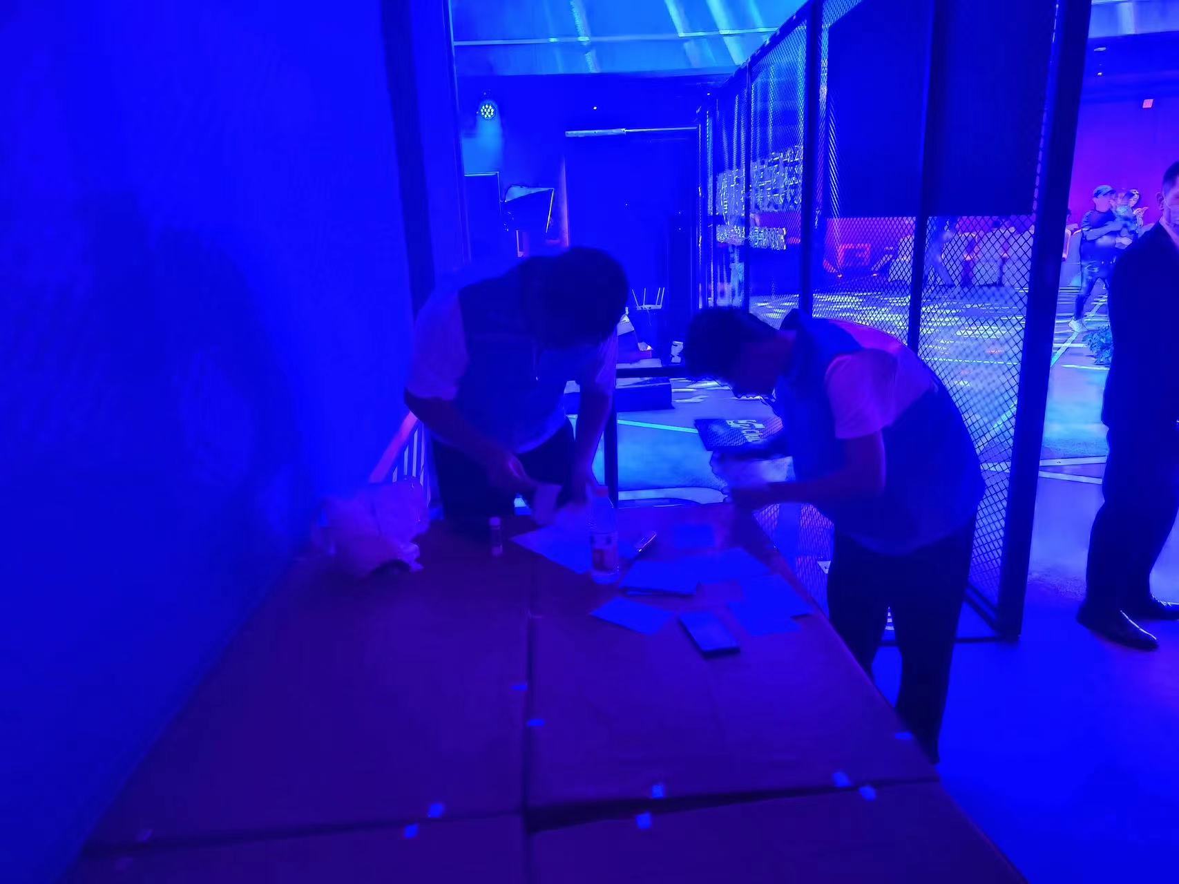 在舞臺兩側,志愿者們協助工作人員,為后臺備物資、看守設備,擺放道具。