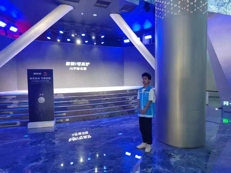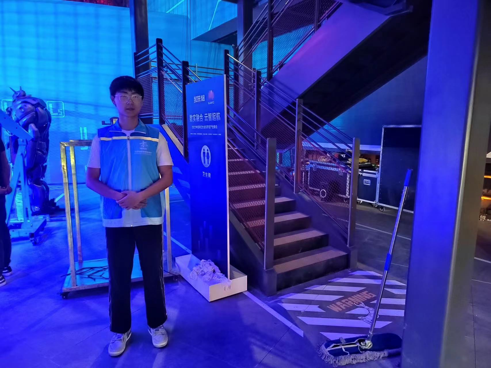 在樓梯口、衛生間、環廊區域等多點位,志愿者們進行安保管控,保障參會人員的安全,助力活動順利開展。