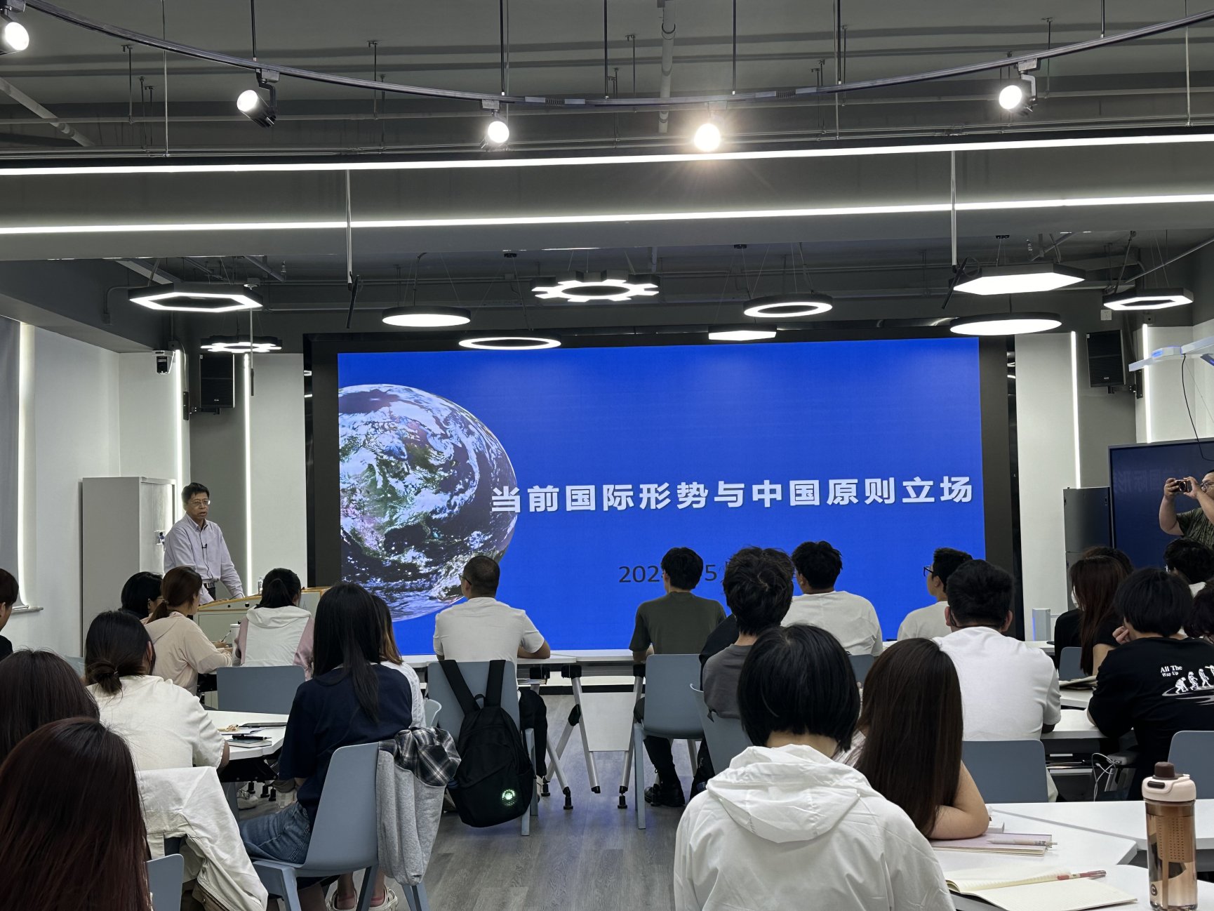 高喜軍書記從動蕩變革的世界、全球矚目的熱點和大國風范的外交三個方面,通過豐富的事例與詳實的數據,為學生分析當前世界格局,深入淺出地講解了中美關系、巴以沖突、俄烏沖突、全球經濟發展形勢、新征程上的中國外交等幾個方面的內容。引導學生了解世界和中國發展大勢,幫助學生深刻認識變革和動蕩兩種趨勢持續演進、團結與分裂兩種取向相互激蕩的世界圖景;深刻認識新時代中國以因勢而謀、迎難而上的進取精神,堅持胸懷天下,推動構建人類命運共同體的大國擔當。
