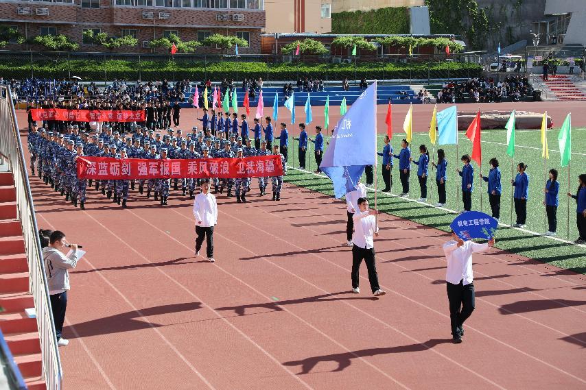 開幕式文藝表演精彩紛呈、高潮迭起。建筑與測繪工程學院師生帶來的 “北斗新方向,建工新坐標” 科技展演驚艷全場,表演呈現衛星定位、三維掃描、建筑機器人和無人機編隊等前沿科技矩陣,生動展現了 “從傳統測繪到智慧建造” 的學科跨越式發展;海軍士官班新生帶來的刺殺操虎虎生風,劈、刺、防等戰術動作剛勁有力,盡顯軍人血性與堅毅品格,充分彰顯學校國防教育特色成果;體育部師生的 “五環閃耀” 團體操,巧妙呈現奧林匹克五環標志,健美操代表隊的 “青春飛揚” 表演,則以靈動的肢體語言,完美詮釋了力量與美感的交融,盡顯青春活力與蓬勃朝氣。