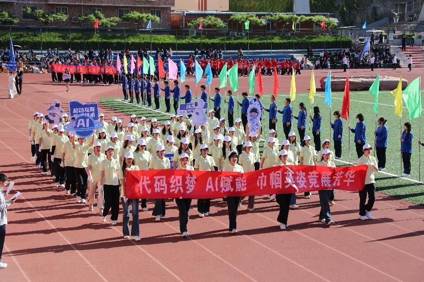 開幕式在激昂的旋律中拉開帷幕。護旗方陣高擎國旗、校旗莊嚴入場,裁判員方陣和各學院代表隊緊隨其后。師生們步伐鏗鏘、口號嘹亮,來自不同學院和職能部門的團體方陣各出新意、各展風采,用響亮的口號與精心設計的表演表達著對這場體育盛會的期待與熱愛。