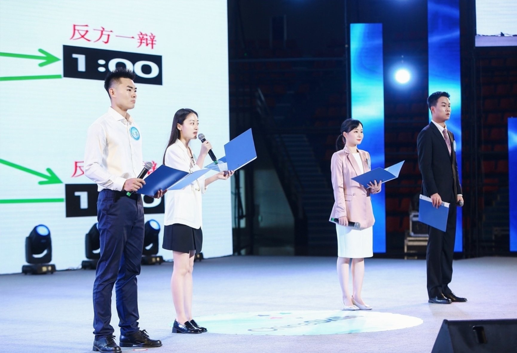比賽包括“中國故事”“情景交流”“職場描述”和“職場辯論”四個環節,由往年的學生參賽改為師生同賽,各院校師生同臺競技。通過“師生同賽”的形式創新競賽方式,師生結為競賽共同體,一同備賽,同臺參賽。于天嬌、侯明軒師生二人組成的參賽隊披荊斬棘、過關斬將,在競技中展示英語語言綜合運用能力與職業風采,充分體現了我校英語教學“學以致用,學用結合”的理念,進一步展示了我校國際化辦學的特色和積淀。