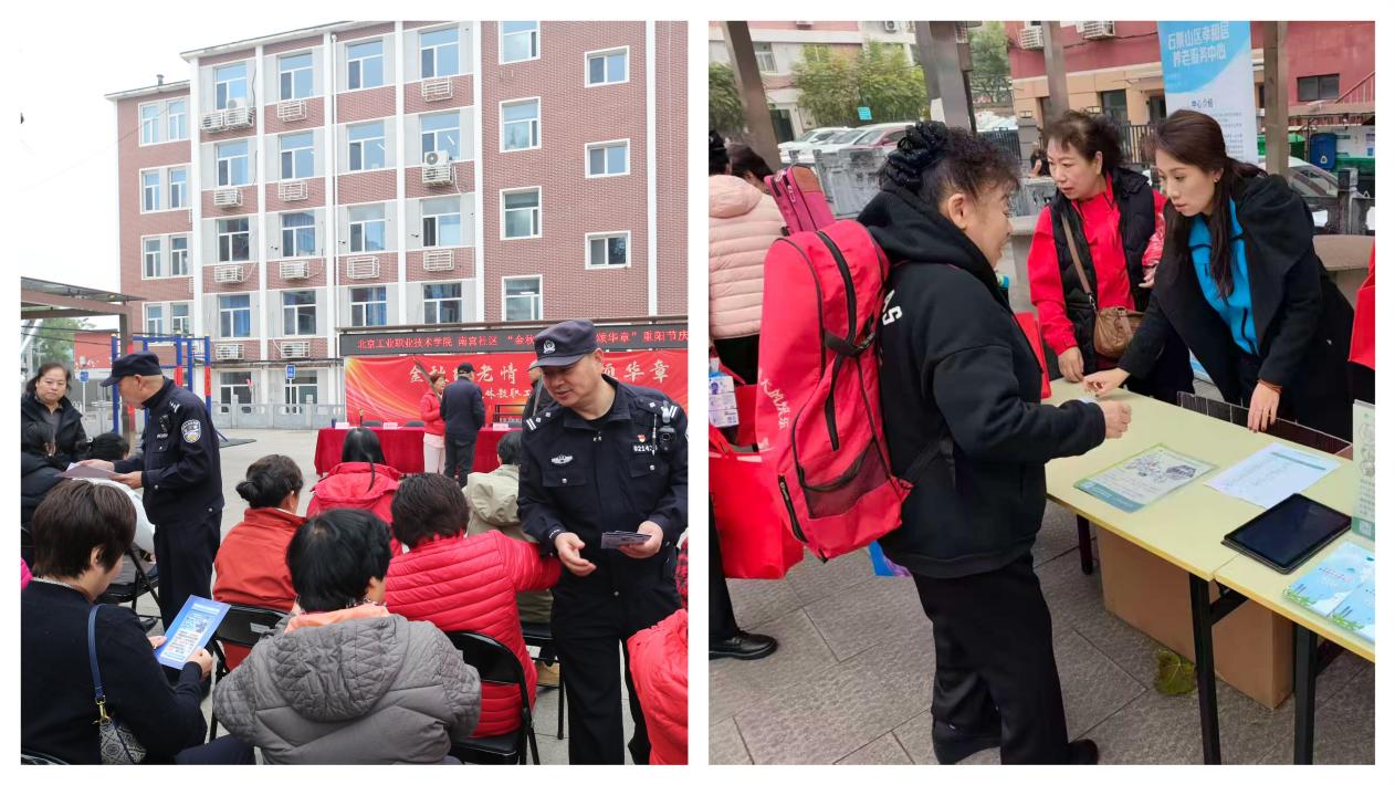 活動現場,五里坨派出所民警們與學生志愿者一起為老同志作反詐宣傳,石景山區知名優秀養老機構“孝和居”為大家作康養咨詢服務。