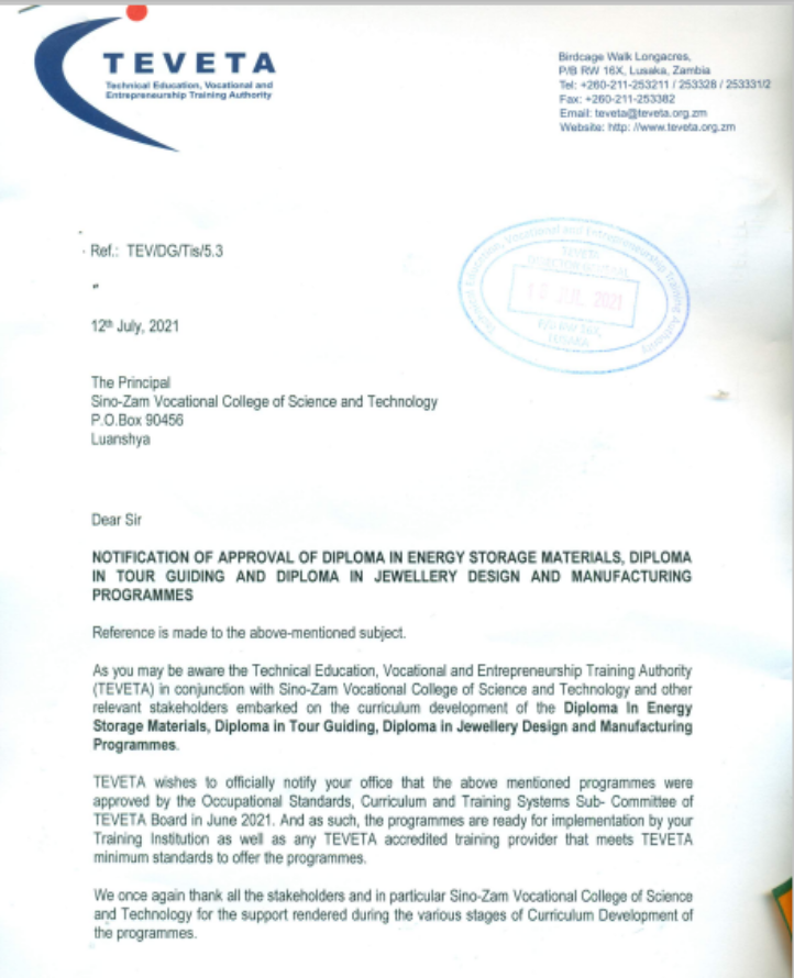 持續推進中贊職業技術學院北工院自動化與信息技術分院建設,同時積極籌建珠寶分院。期間,我校又一個獨立開發制定的專業教學標準—珠寶設計與加工專業教學標準獲得了贊比亞職業教育與培訓管理局(TEVETA)的正式批復,是繼我校開發的自動化與信息技術專業教學標準之后又一個被納入贊比亞國民教育體系教學標準;積極推進海外分院自動化與信息技術及珠寶設計與加工第二批9本英文專業教材及4本工業漢語教材的開發編寫工作。