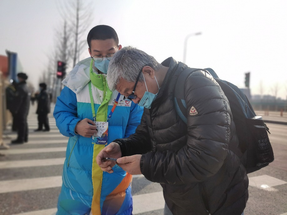 文管學院會計2031班王雪濤的工作地點是首鋼園南門,有一天他接待了一位殘疾人老爺爺,老爺爺是位聾啞人,因為沒有預約沒能進入園內,顯得非常的著急和無助,王雪濤經過與老爺爺的一番溝通,幫助老爺爺打開移動熱點連上網,一步一步指導老爺爺進行操作預約,當克服了一個又一個困難后老爺爺終于如愿以償進入了園內,臨別時老爺爺笑著向他豎起了大拇指,那一刻他深刻體會到了幫助他人的幸福感!