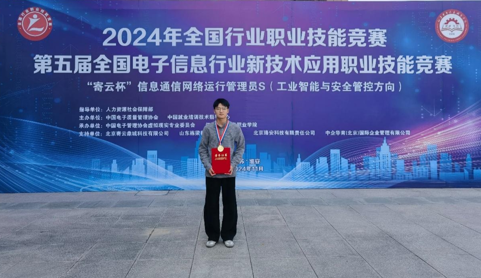 近日,2024年全國行業職業技能競賽——第五屆全國電子信息行業新技術應用職業技能競賽(工業智能與安全管控)全國總決賽在江蘇淮安開賽。來自全國24個省、自治區、直轄市的90支隊伍參加此次競賽。經過兩天的激烈角逐,我校信息工程學院網絡技術2332班(現場工程師)王遠洋位列第一,榮獲學生組全國一等獎(金牌);移動2331班的學生李曉亮榮獲學生組全國二等獎(銀牌)。