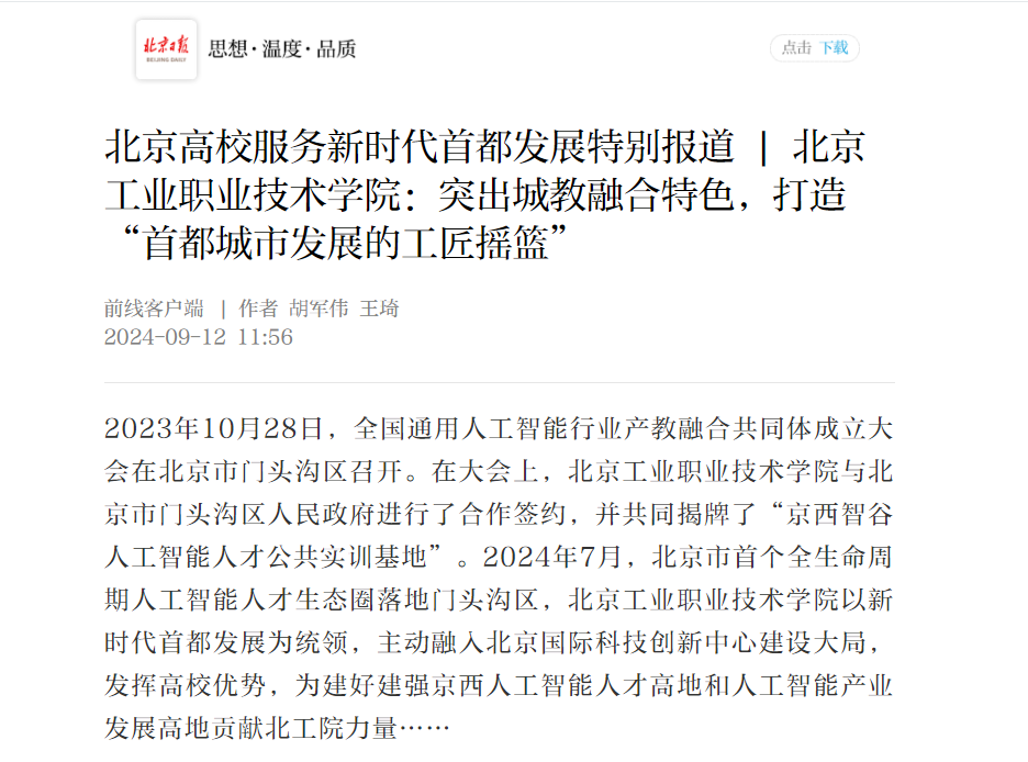 北京高校服務新時代首都發展特別報道 | 北京工業職業技術學院:突出城教融合特色,打造“首都城市發展的工匠搖籃”