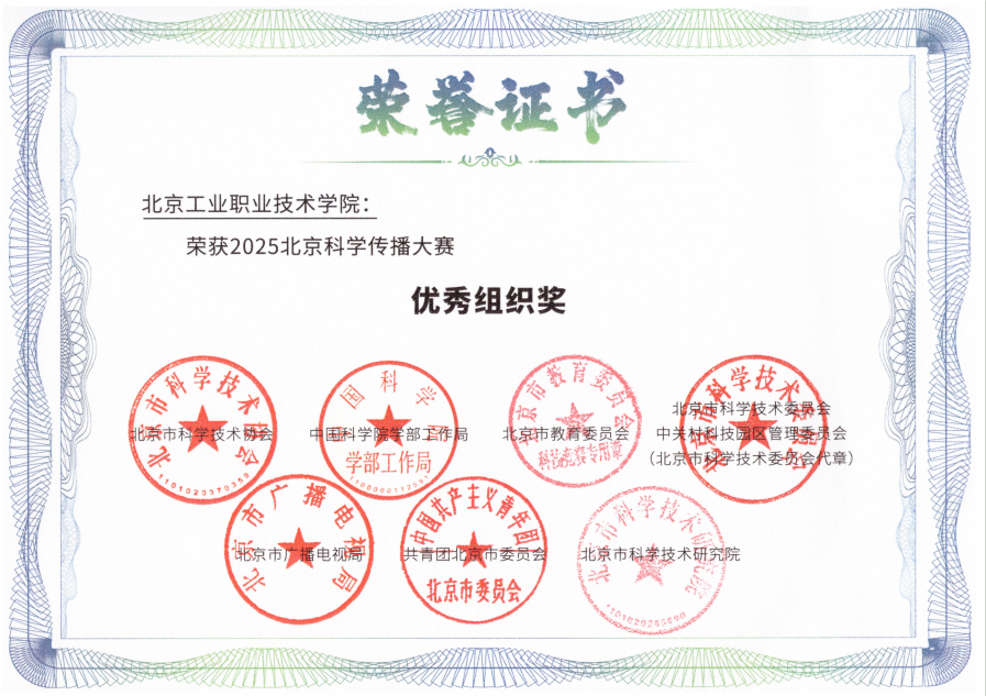 近日,我校在2025年北京市及石景山區科學傳播大賽中雙線告捷:在“2025北京科學傳播大賽”中榮獲二等獎1人、三等獎1人;在“2025石景山區科學傳播大賽”中榮獲一等獎3人、二等獎4人、三等獎8人。與此同時,憑借在賽事組織中的高效統籌、師生參與的高漲熱情及作品呈現的專業水準,學校榮膺兩級賽事“優秀組織獎”,充分彰顯了學校“以賽促育”的職業教育特色和“服務區域發展”的使命擔當。