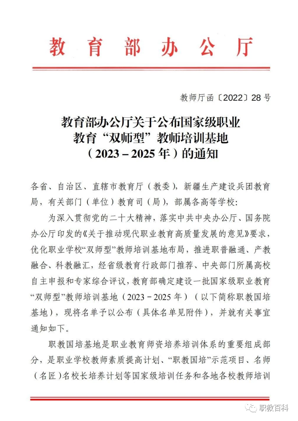 遴選國家級職業教育“雙師型”教師培訓基地,是新時代教師隊伍建設的又一重大舉措,是全國各大高校骨干專業在“雙師型”教師培養培訓等方面綜合實力的較量。我校能夠成功入選,體現了學校在重點專業建設、校企合作、師資隊伍、培訓能力、人才培養、硬件水平等方面已走在全國同類院校前列,是學校幾年來“雙高”建設的又一重要成果。